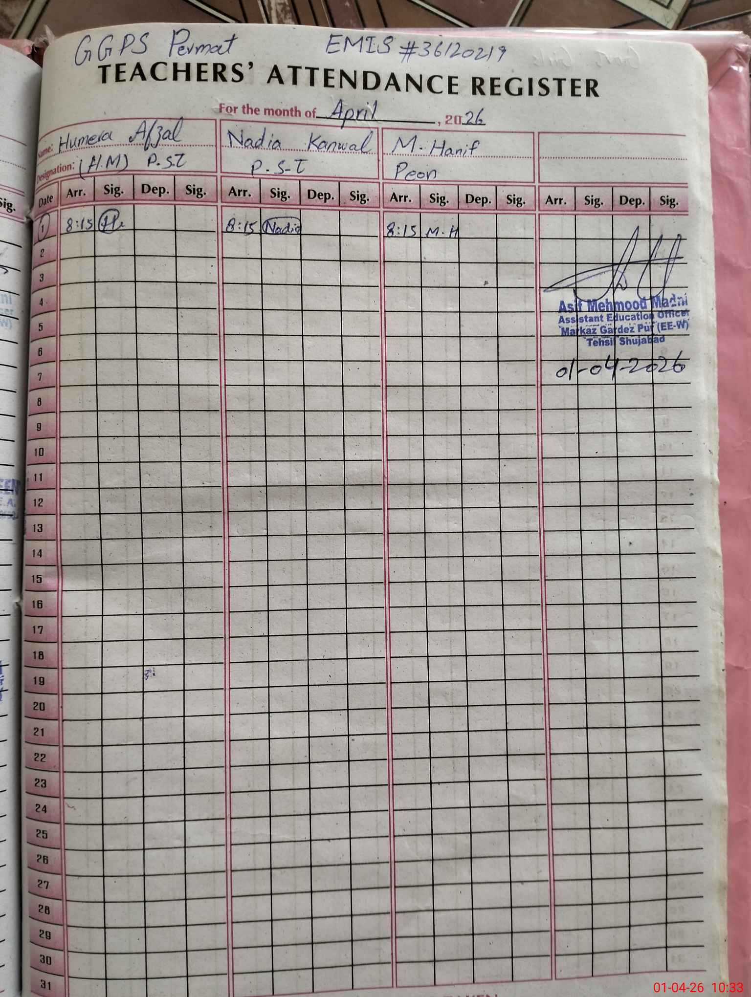 | EMIS Code: 36120219 | Name of School: GGPS PARMAT STOP MUZA HALALWAJA | |||