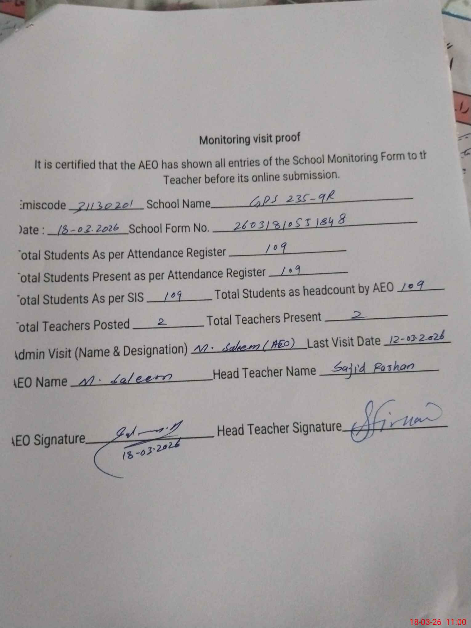 | EMIS Code: 31130201 | Name of School: GPS CHAK 235/9-R | |||