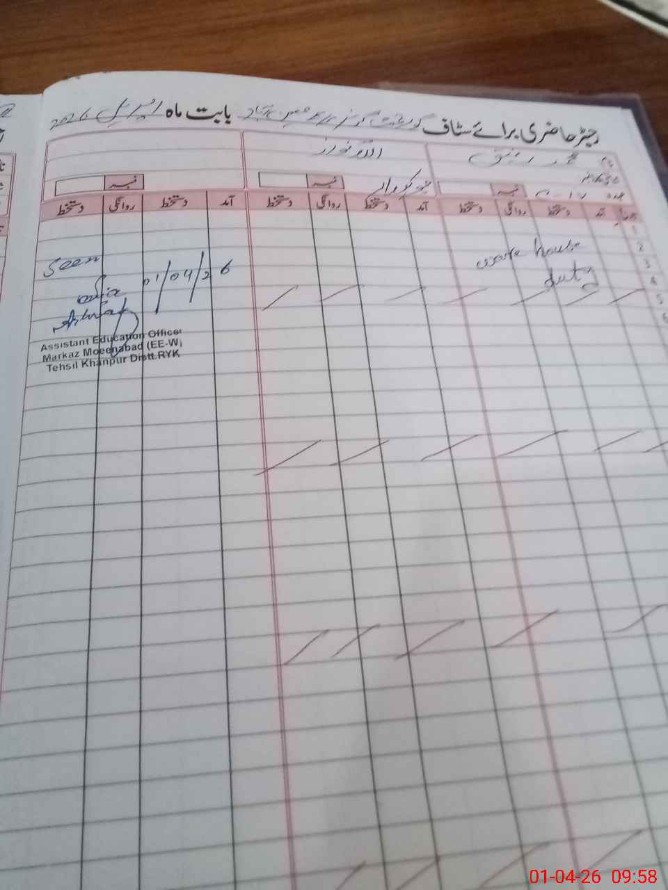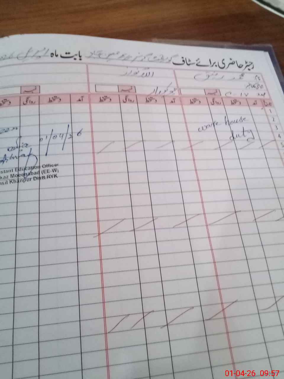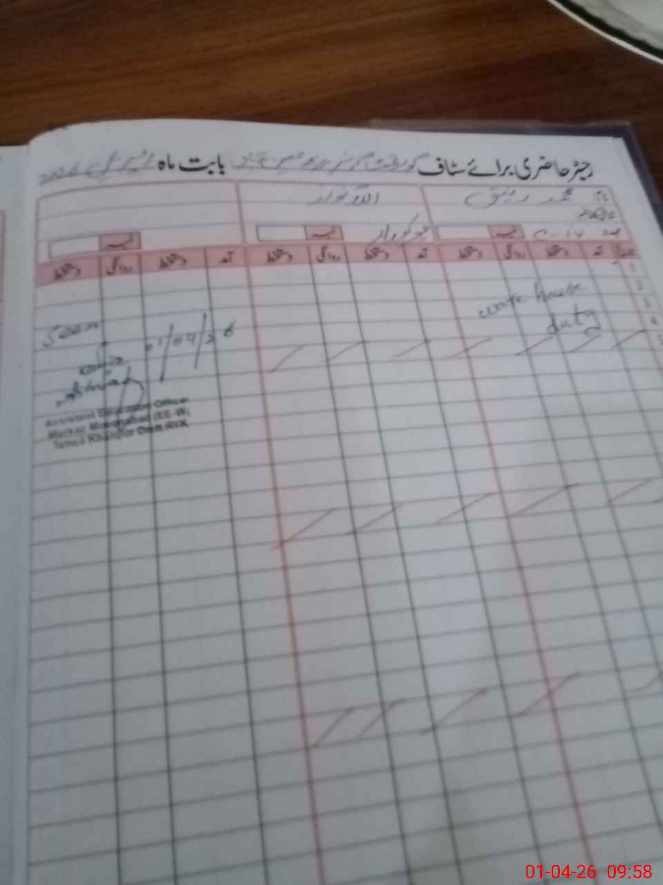 | CNIC | Full Name | Designation | R/C | Absence During Last Calender Month |