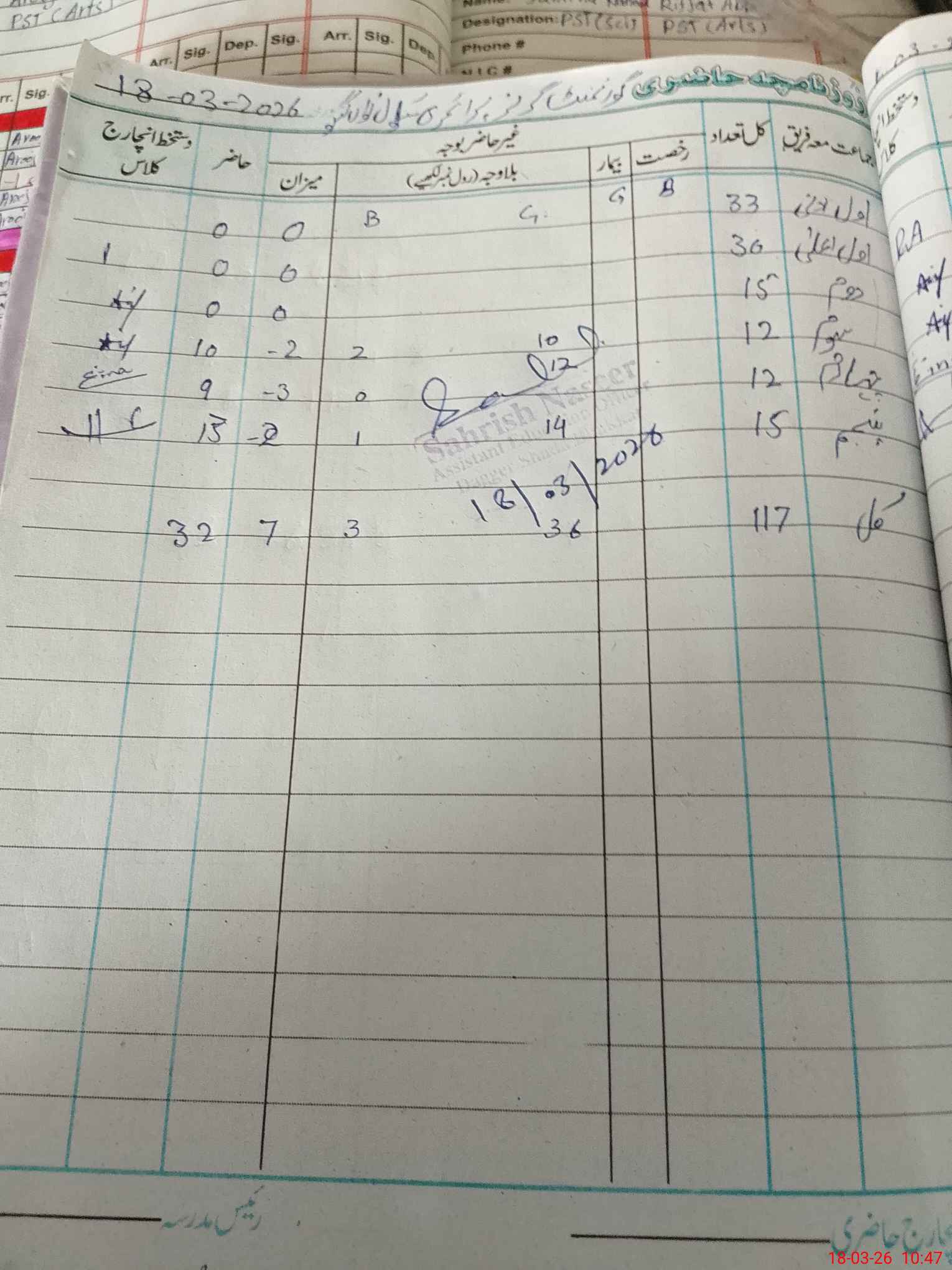 | 38**** | Ri**** Ab**** | PST Arts | Regular | 0 | 0 | 0 | 0 | 0 | 0 | 0 | 0 | 0 | Absent (Un-Authorized) |