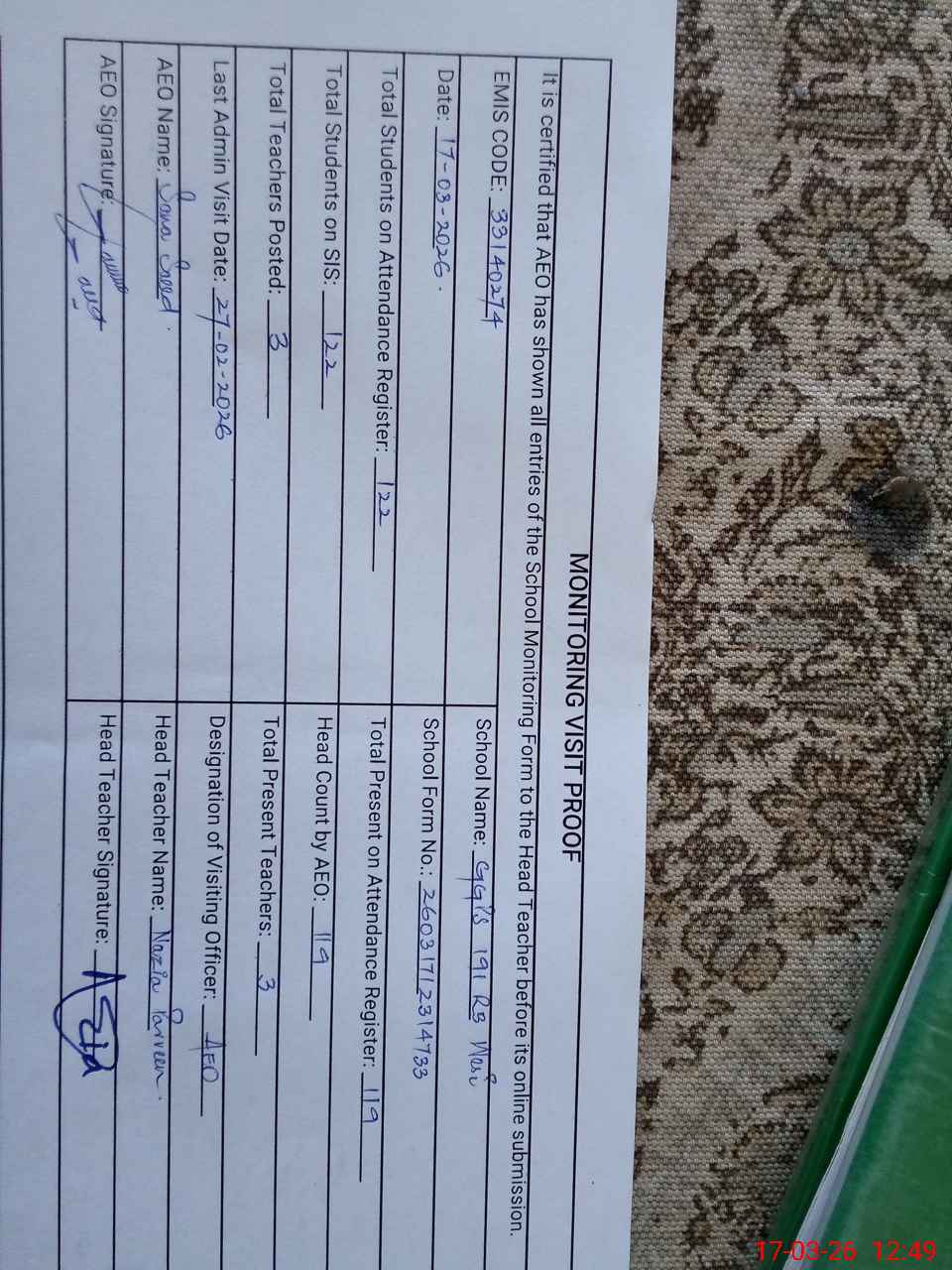 | Certified that this School was Inspected by the Undersigned MEA/DMO Today and the Information Stated Above is as Per Record. | |||||