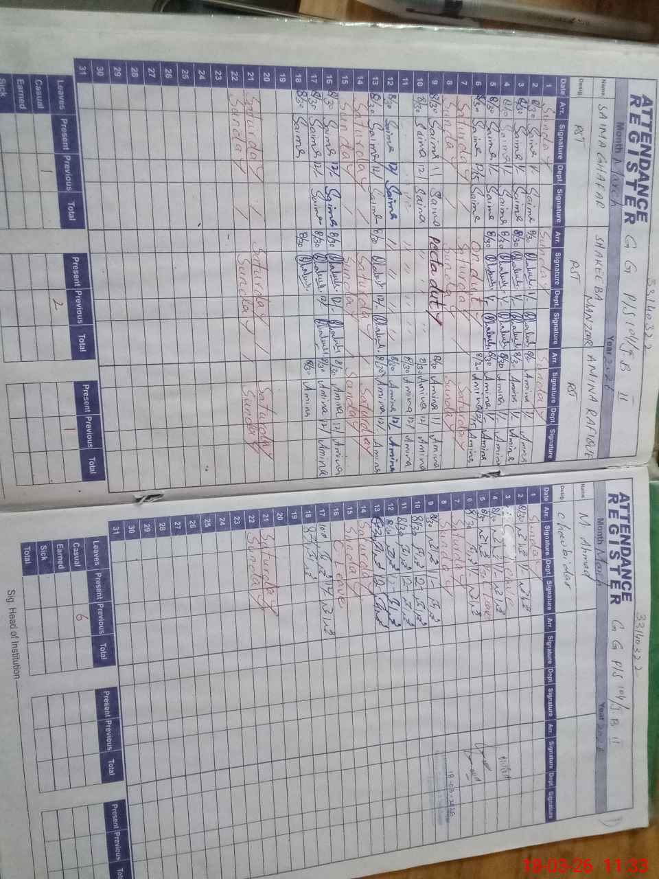 | Leave | Duty | Absent | Maternity | Medical | Ex- Pak |