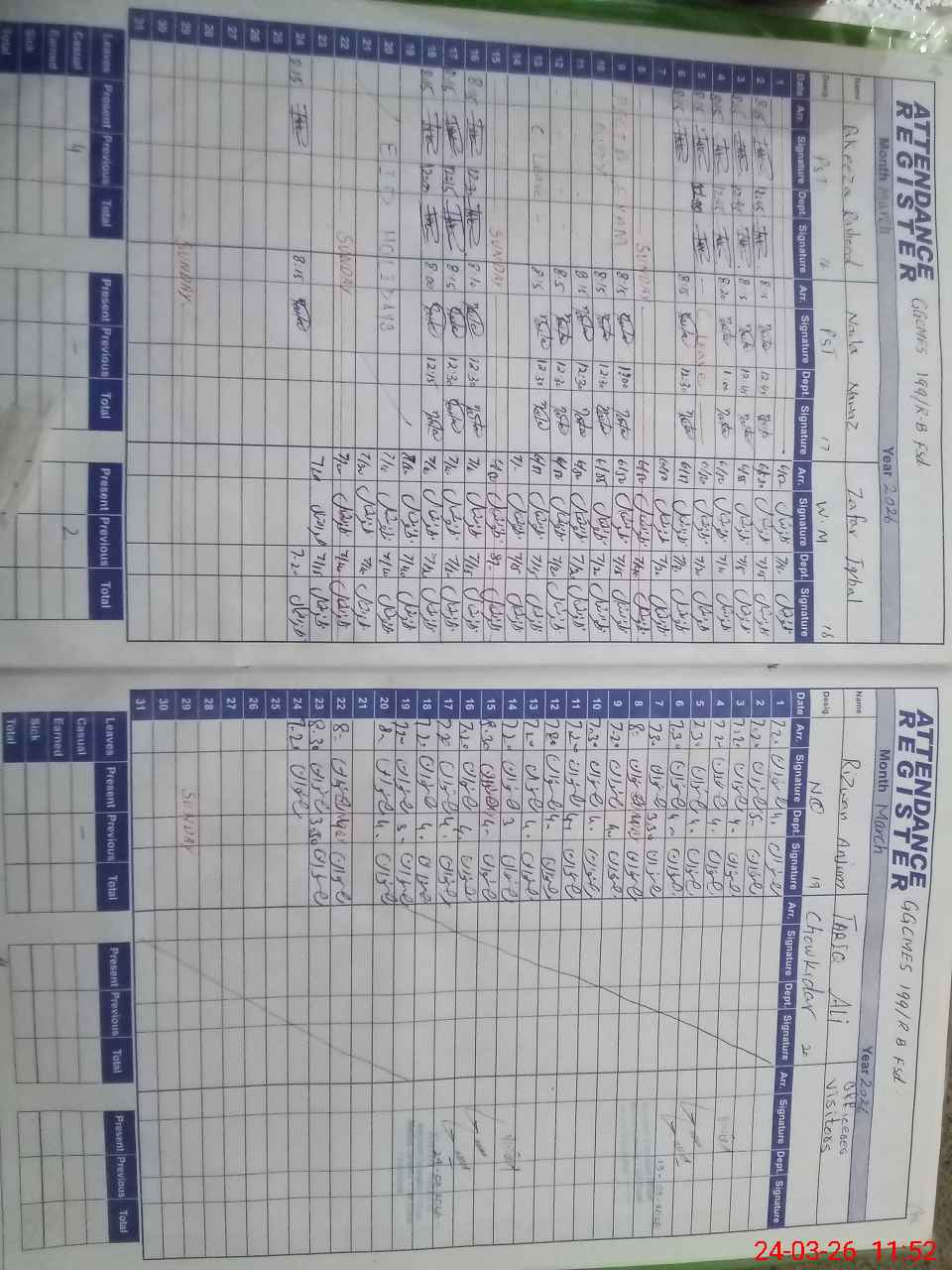 | CNIC | Full Name | Designation | R/C | Absence During Last Calender Month |