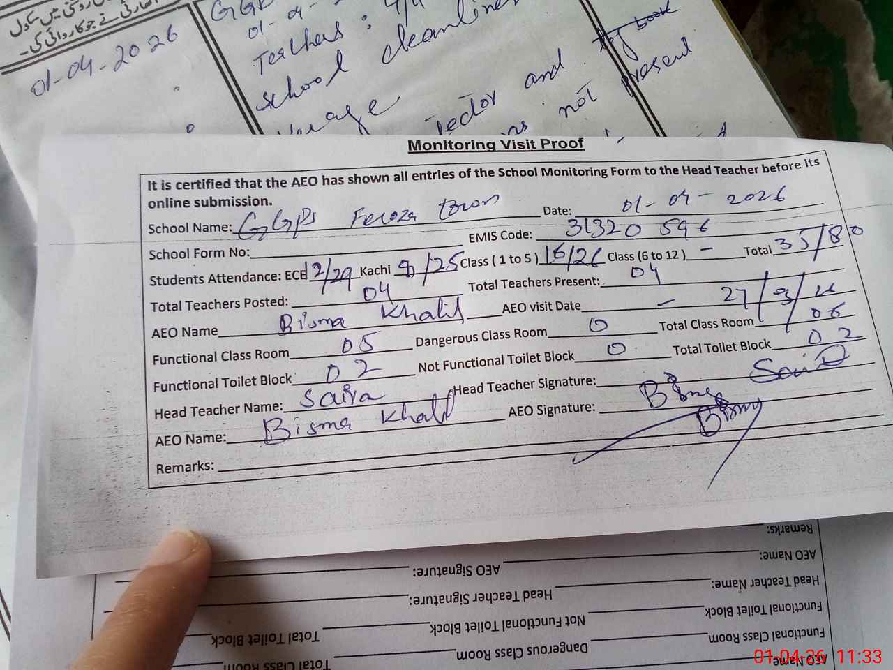 | EMIS Code: 31320596 | Name of School: GGPS FEROZA TOWN | |||