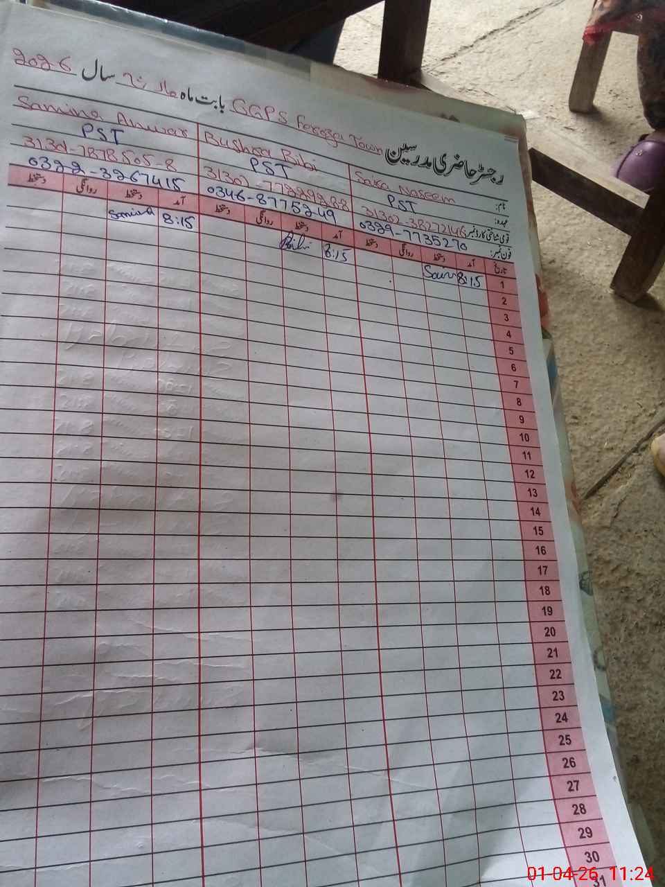 | Name: Sh**** Sh**** Designation: (School Headmaster's/Headmistress's) PST Phone/Cell Number: 03**** |