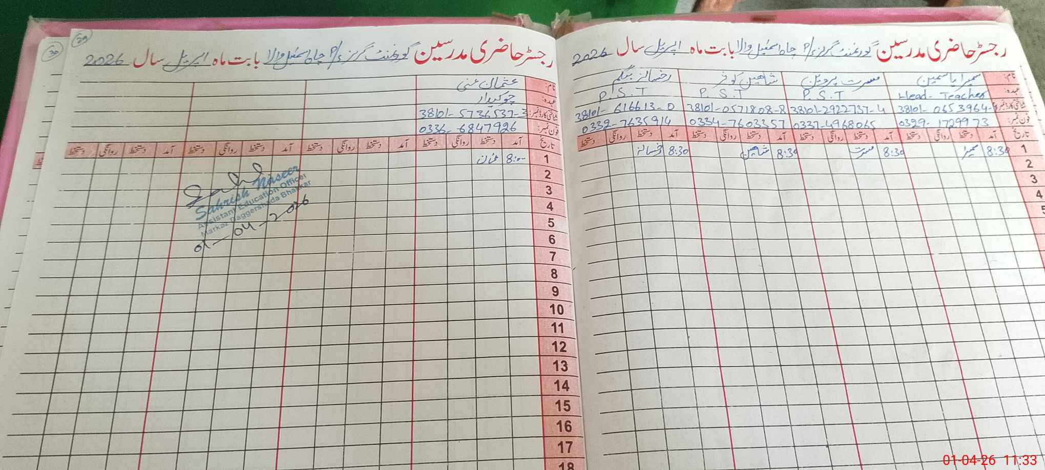 | Name: Su**** Ya**** Designation: (School Headmaster's/Headmistress's) PST Phone/Cell Number: 03**** |