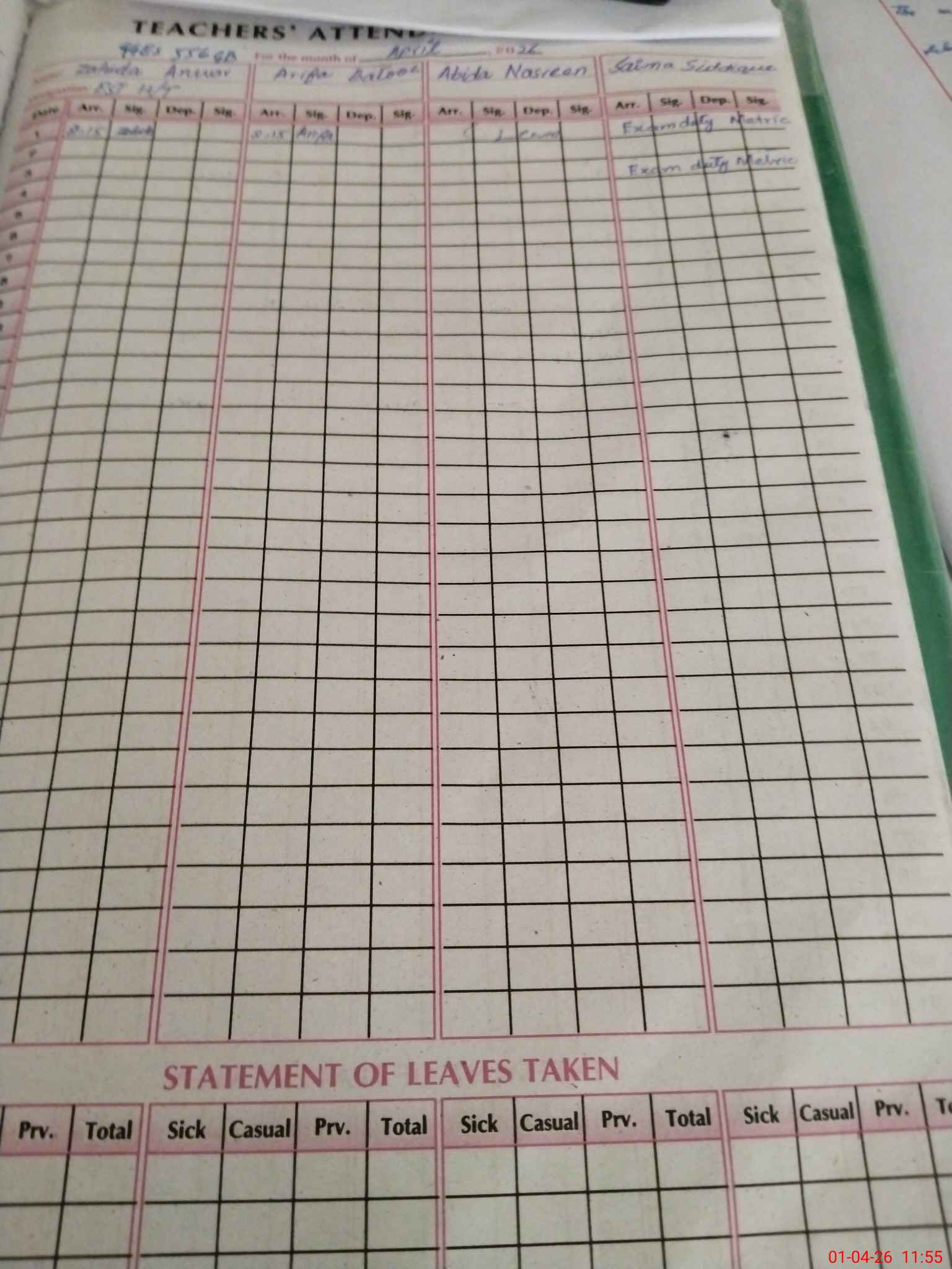 | 33**** | Ab**** Na**** | PST Arts | Regular | 0 | 0 | 0 | 0 | 0 | 0 | 0 | 0 | 0 | Casual |