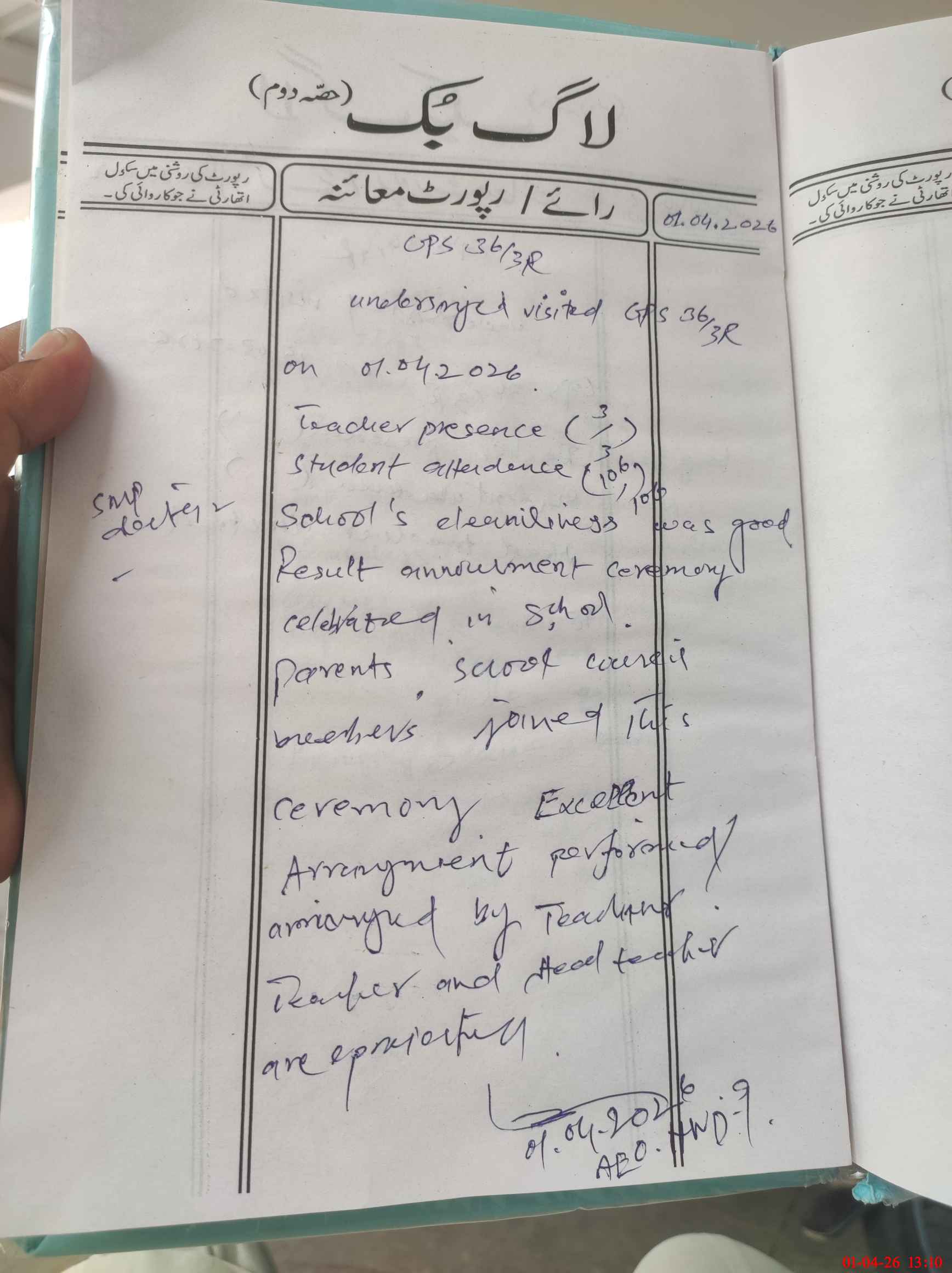 | Attendance Register | Head Teacher | MEA with School | Visit Proof |