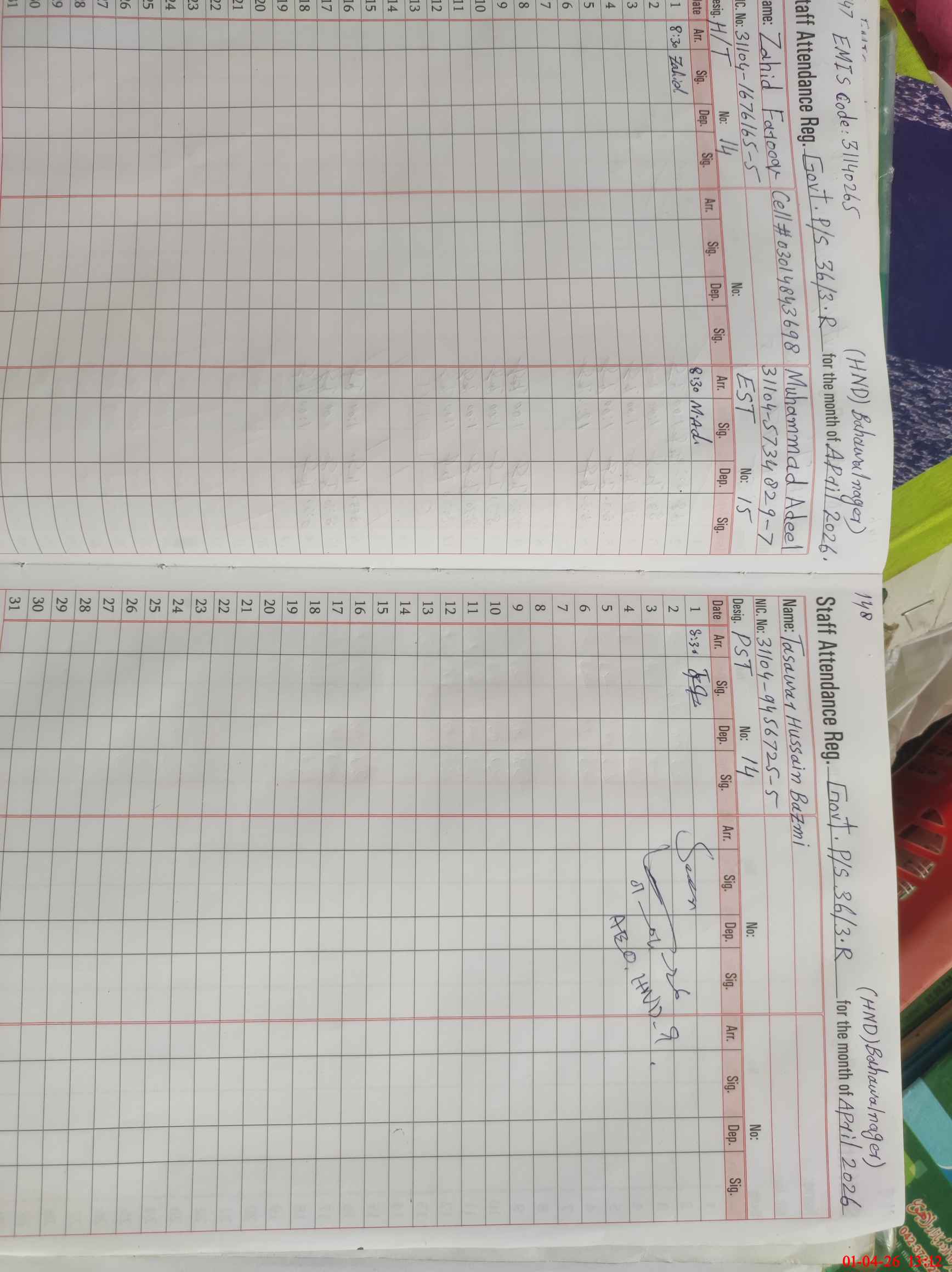 | Name: Za**** Fa**** Designation: (School Headmaster's/Headmistress's) PST Phone/Cell Number: 03**** |
