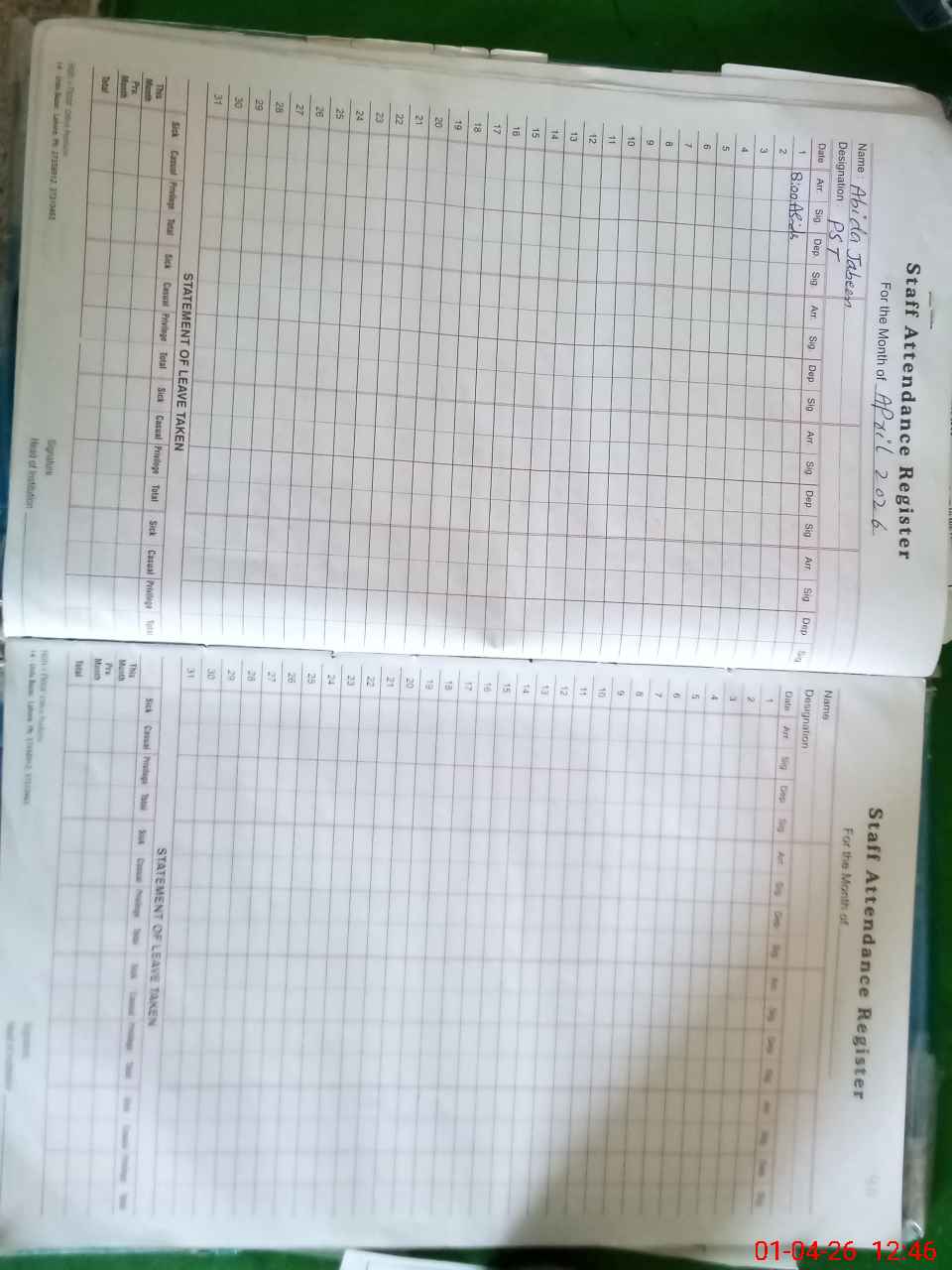 | Leave | Duty | Absent | Maternity | Medical | Ex- Pak |