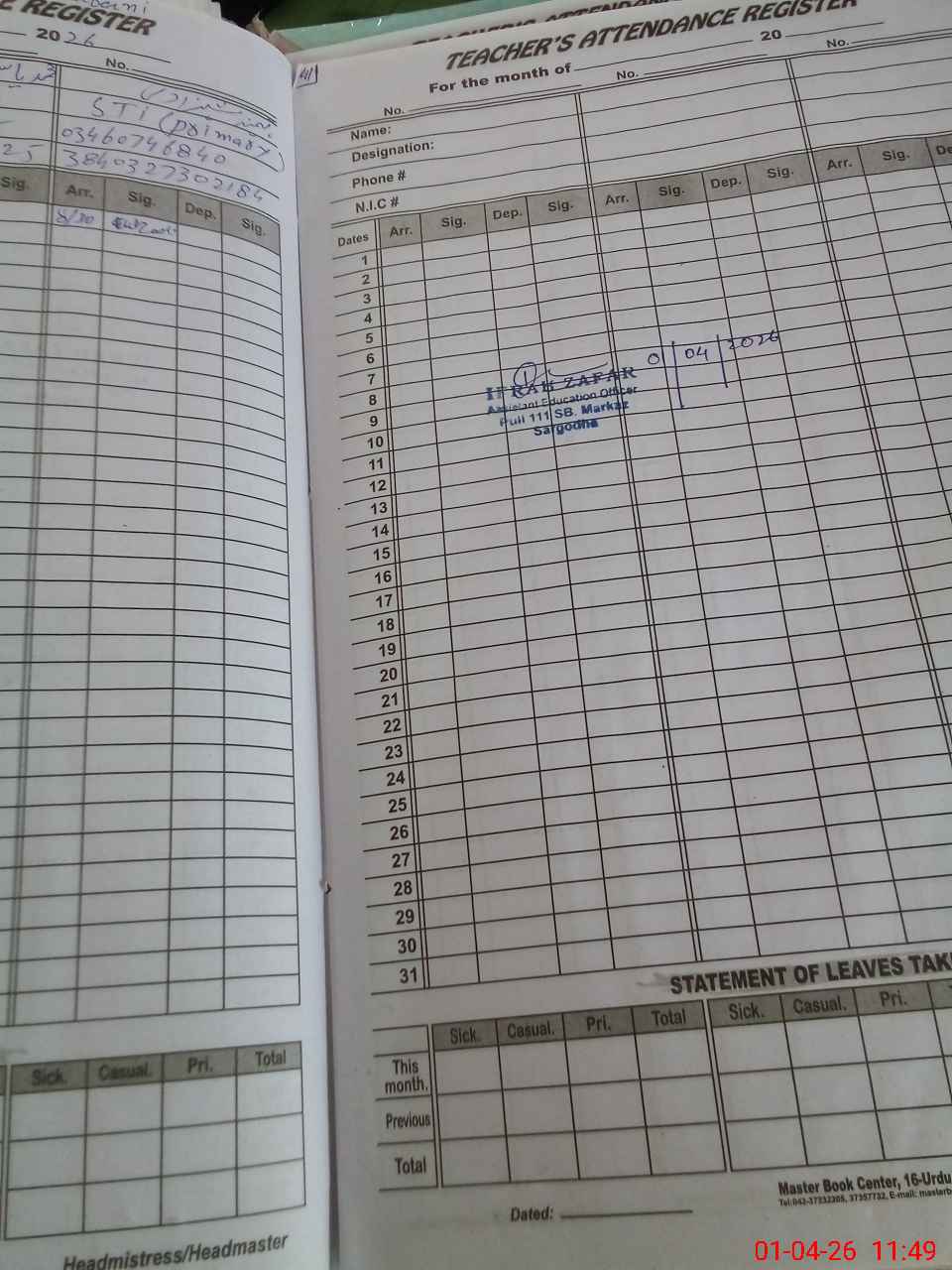 | Name: Is**** Sa**** Designation: (School Headmaster's/Headmistress's) PST Phone/Cell Number: 03**** |