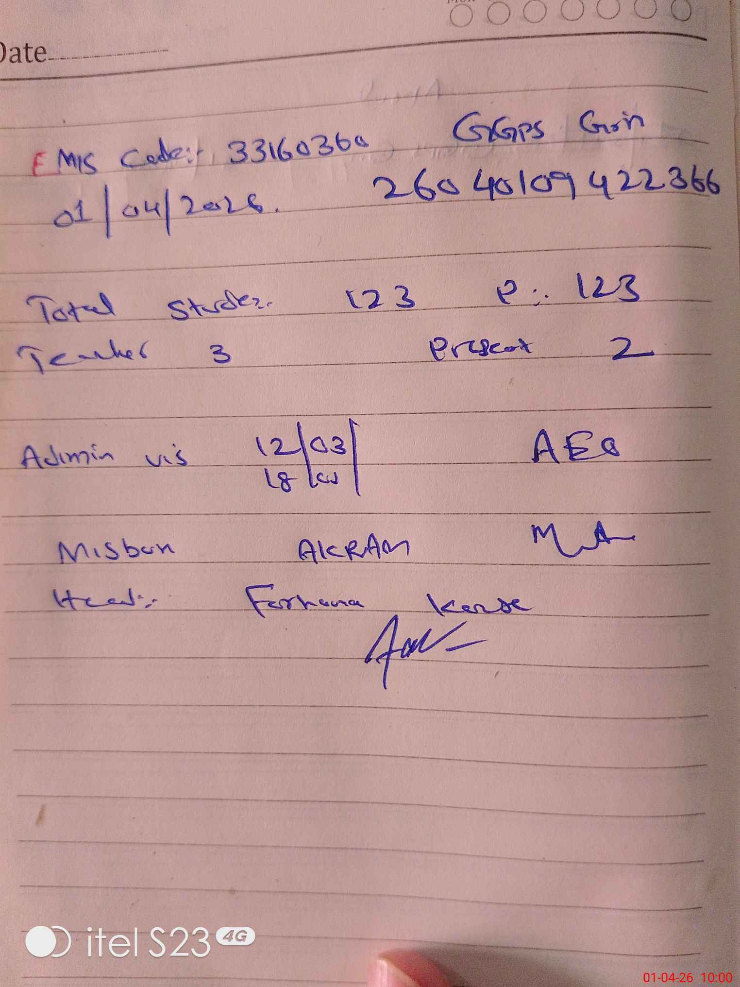 | Name: Fa**** Ko**** Designation: (School Headmaster's/Headmistress's) PST Phone/Cell Number: 03**** |