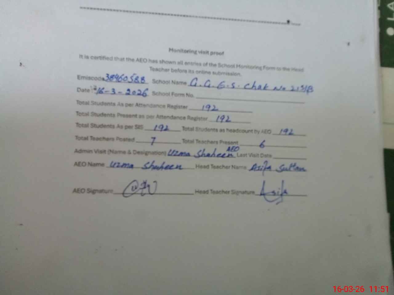 | EMIS Code: 38460588 | Name of School: GGES CHAK NO. 21 SB | |||