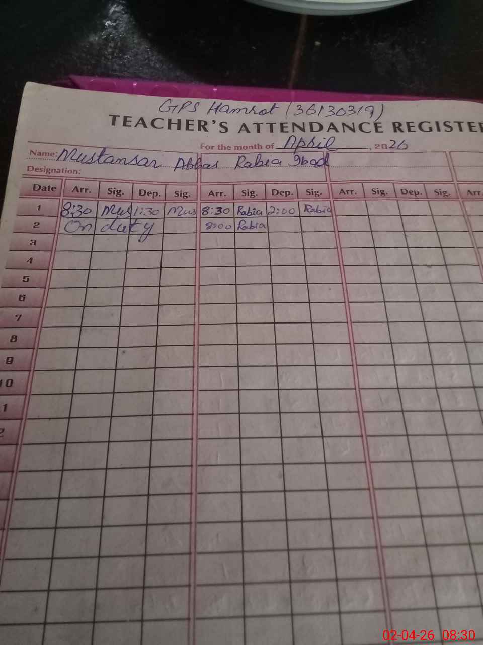 | Name: Mu**** Ab**** Designation: (School Headmaster's/Headmistress's) PST/PTC/JV Phone/Cell Number: 03**** |