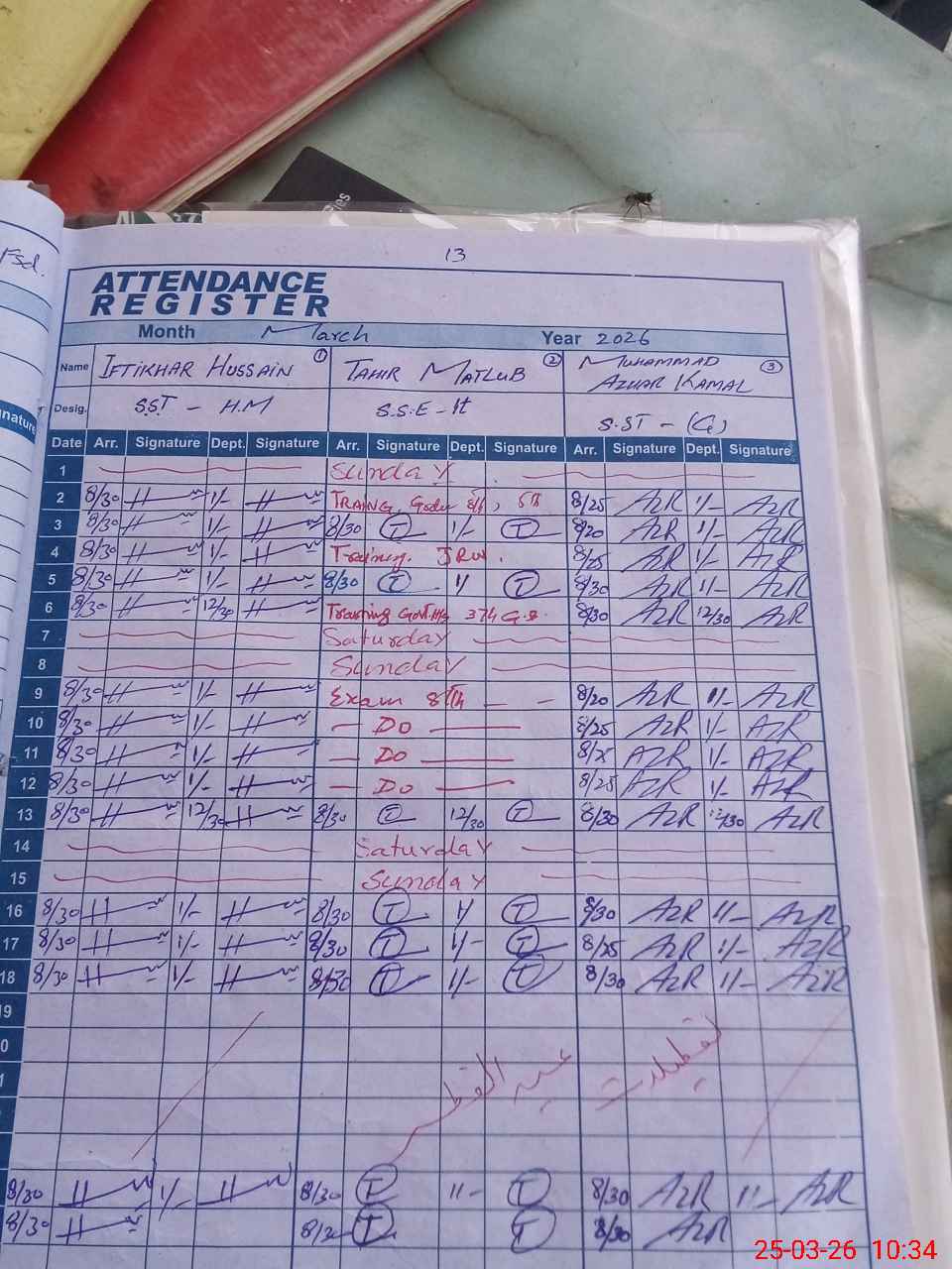 | CNIC | Full Name | Designation | R/C | Absence During Last Calender Month |