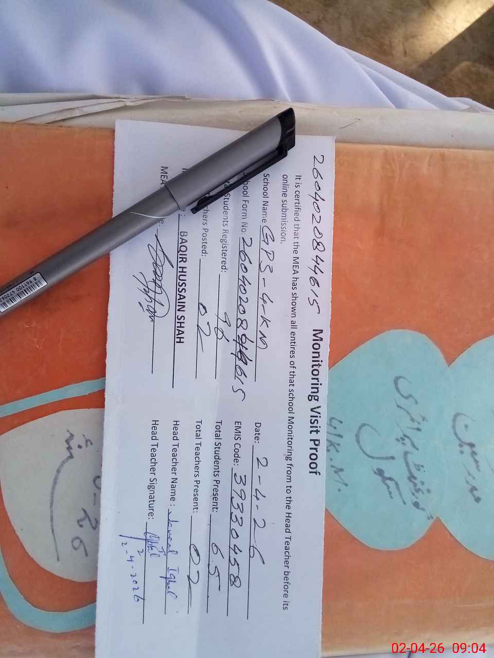 | EMIS Code: 39330458 | Name of School: GPS CHAK NO. 4 KM | |||