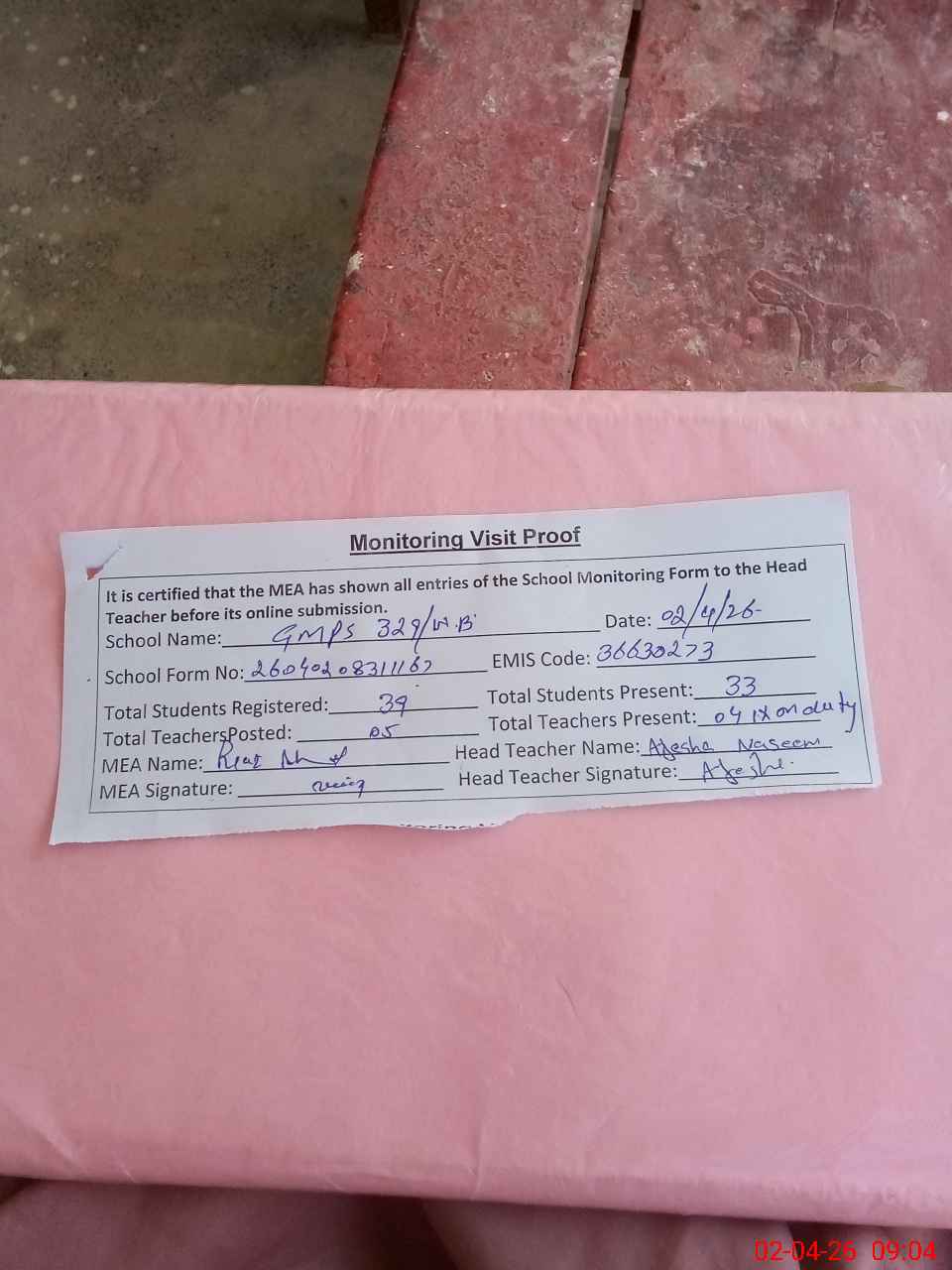 | EMIS Code: 36630273 | Name of School: GMPS 329 WB DUNYA PUR | |||