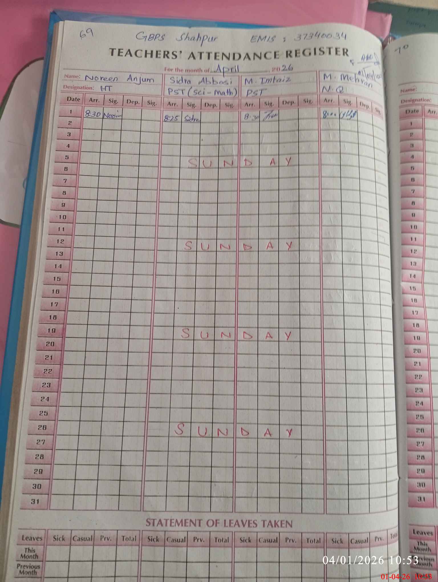 | EMIS Code: 37340034 | Name of School: GPS SHAHPUR | |||