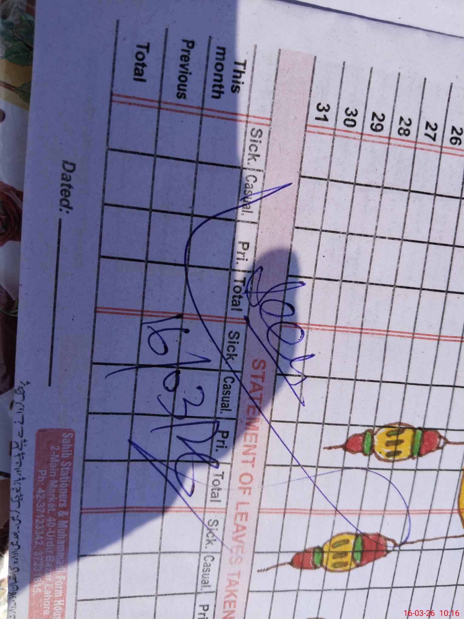 | Leave | Duty | Absent | Maternity | Medical | Ex- Pak |