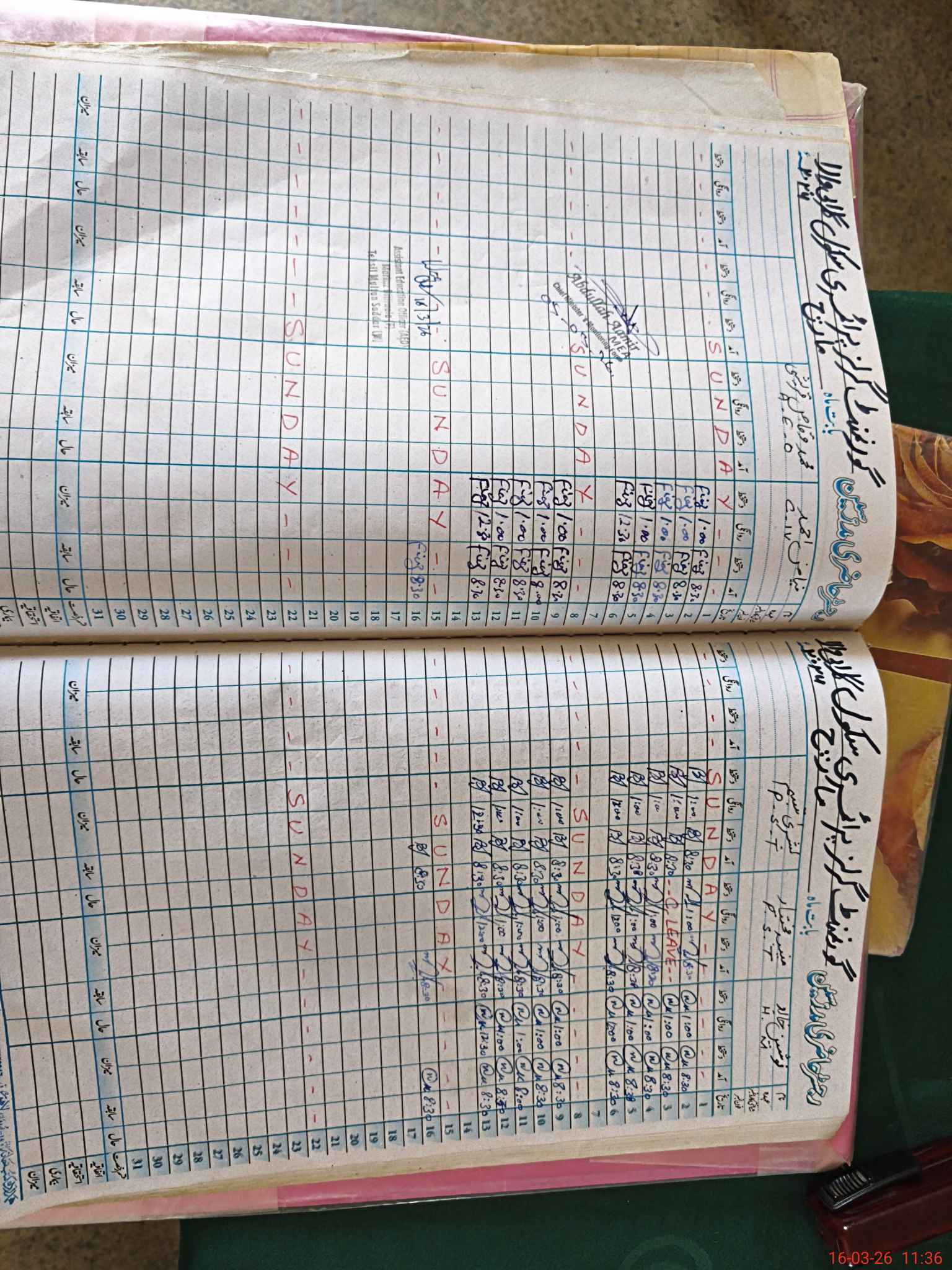 | CNIC | Full Name | Designation | R/C | Absence During Last Calender Month |