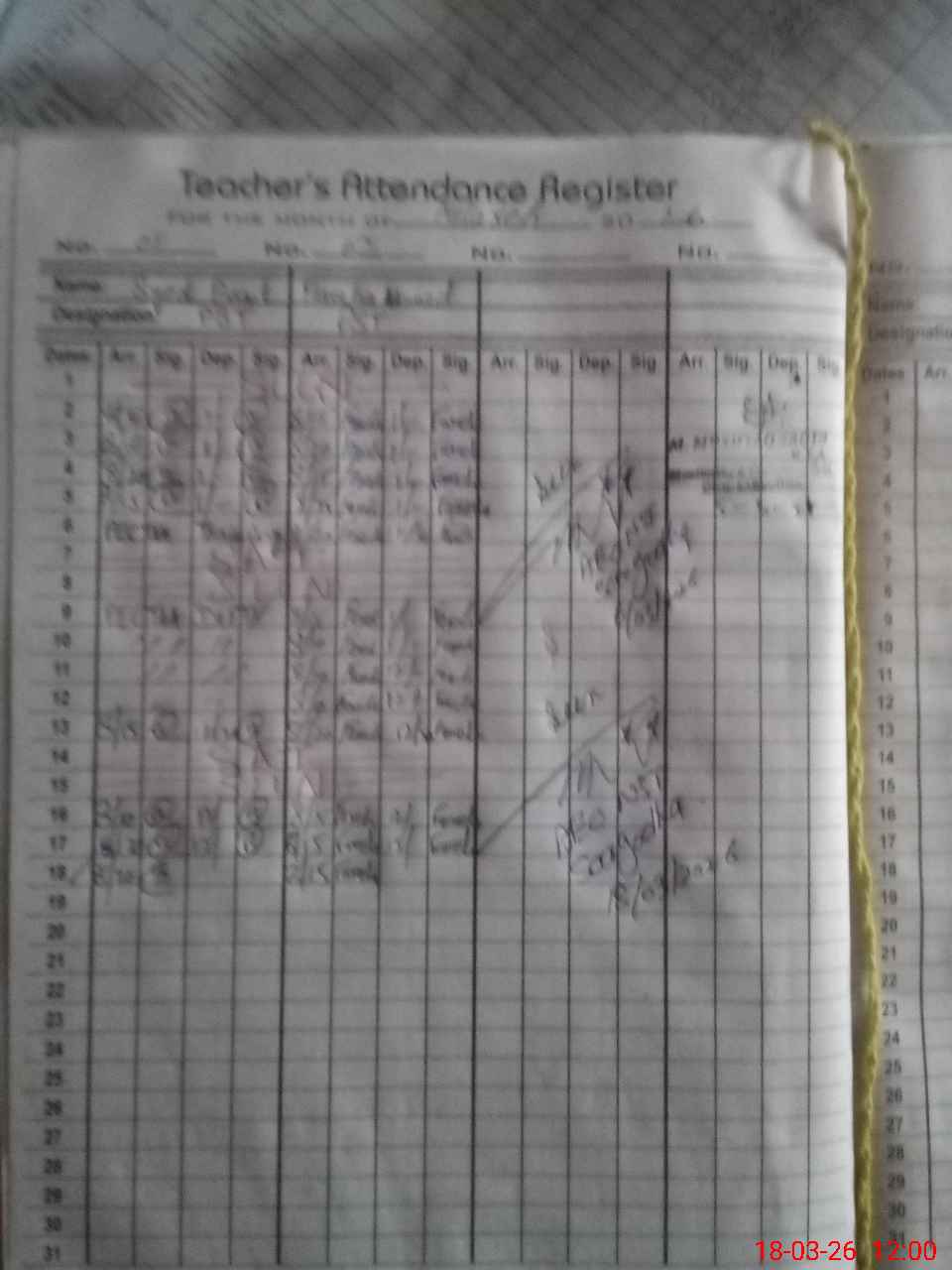 | CNIC | Full Name | Designation | R/C | Absence During Last Calender Month |