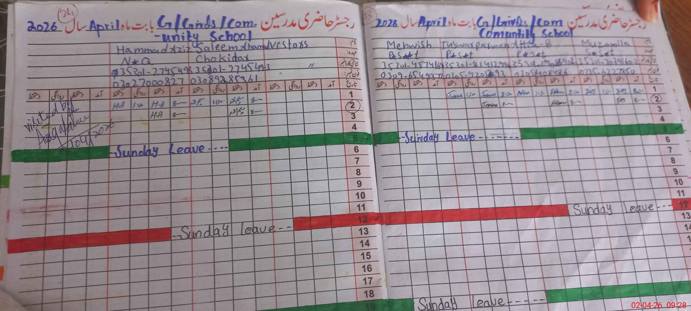 | Attendance Register | Head Teacher | MEA with School | Visit Proof |
