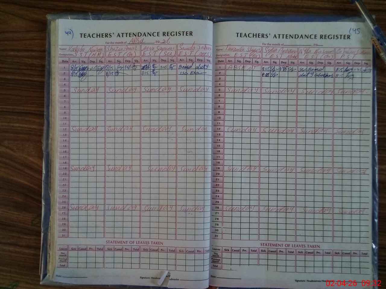 | 34**** | Ta**** Sh**** | Temporary | 0 | 0 | 1 | 0 | 0 | 0 | 0 | 0 | 0 | Absent (Un-Authorized) | |
