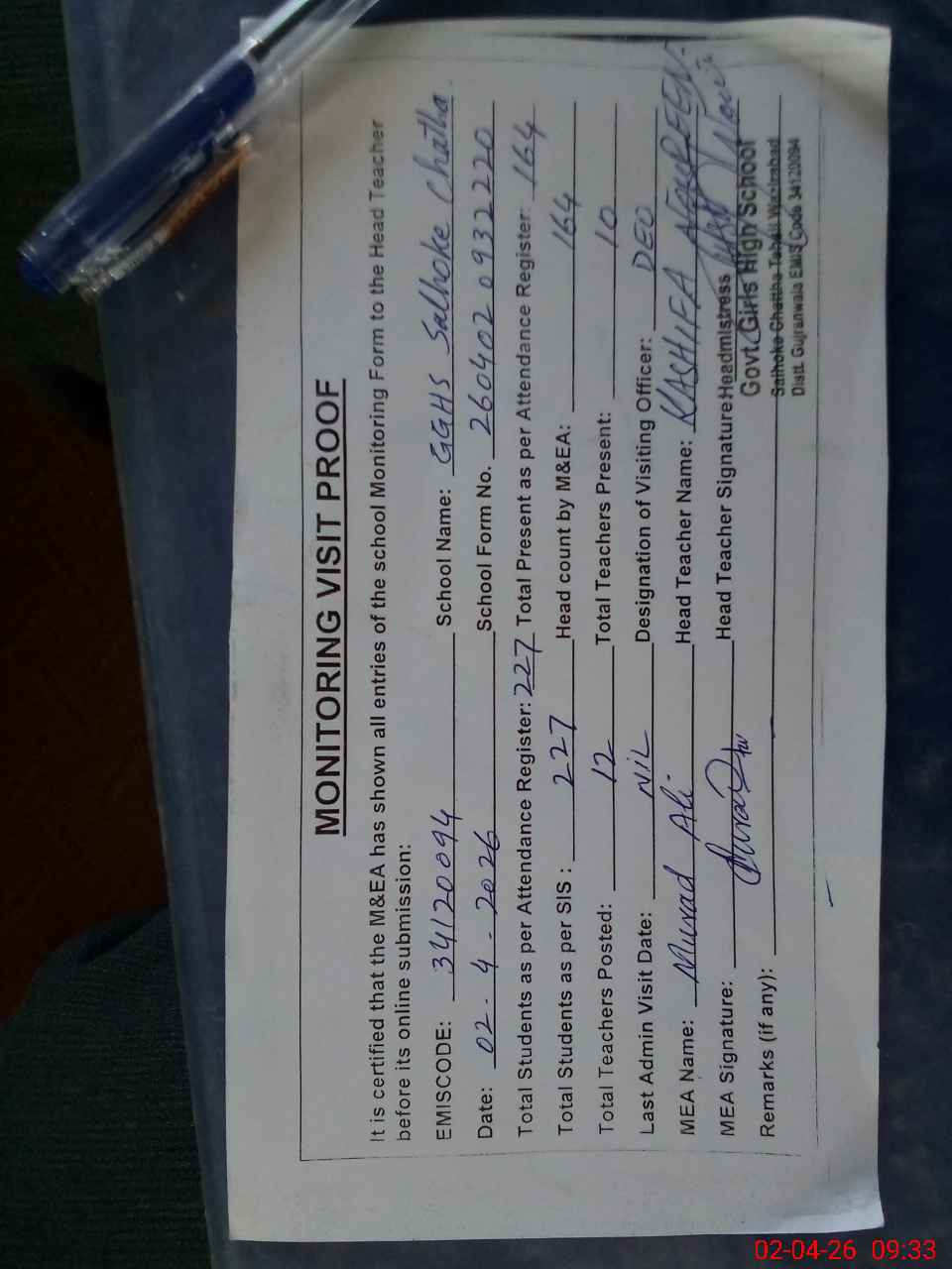 | EMIS Code: 34120094 | Name of School: GGHS SALOKE CHATHA | |||