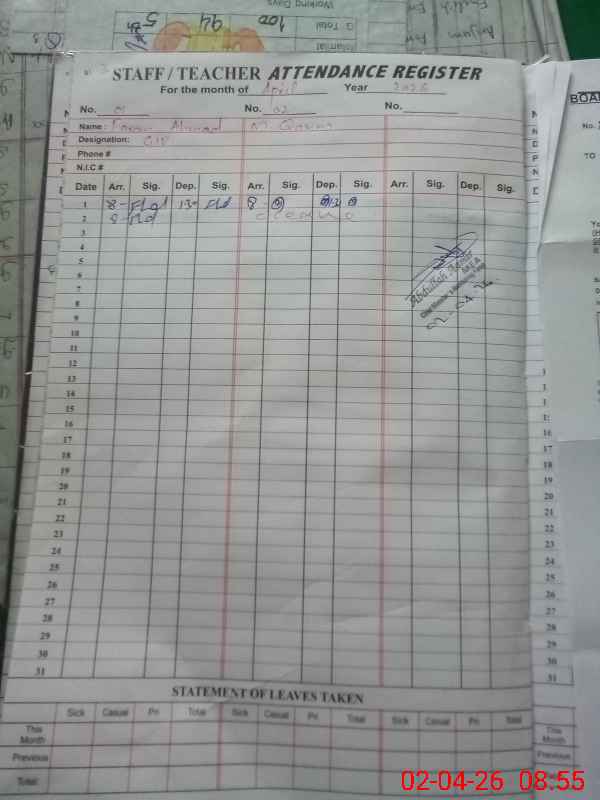 | 36**** | An**** No**** | EST Urdu | Regular | 2 | 2 | 0 | 0 | 0 | 0 | 0 | 0 | 2 | Exam Duty |