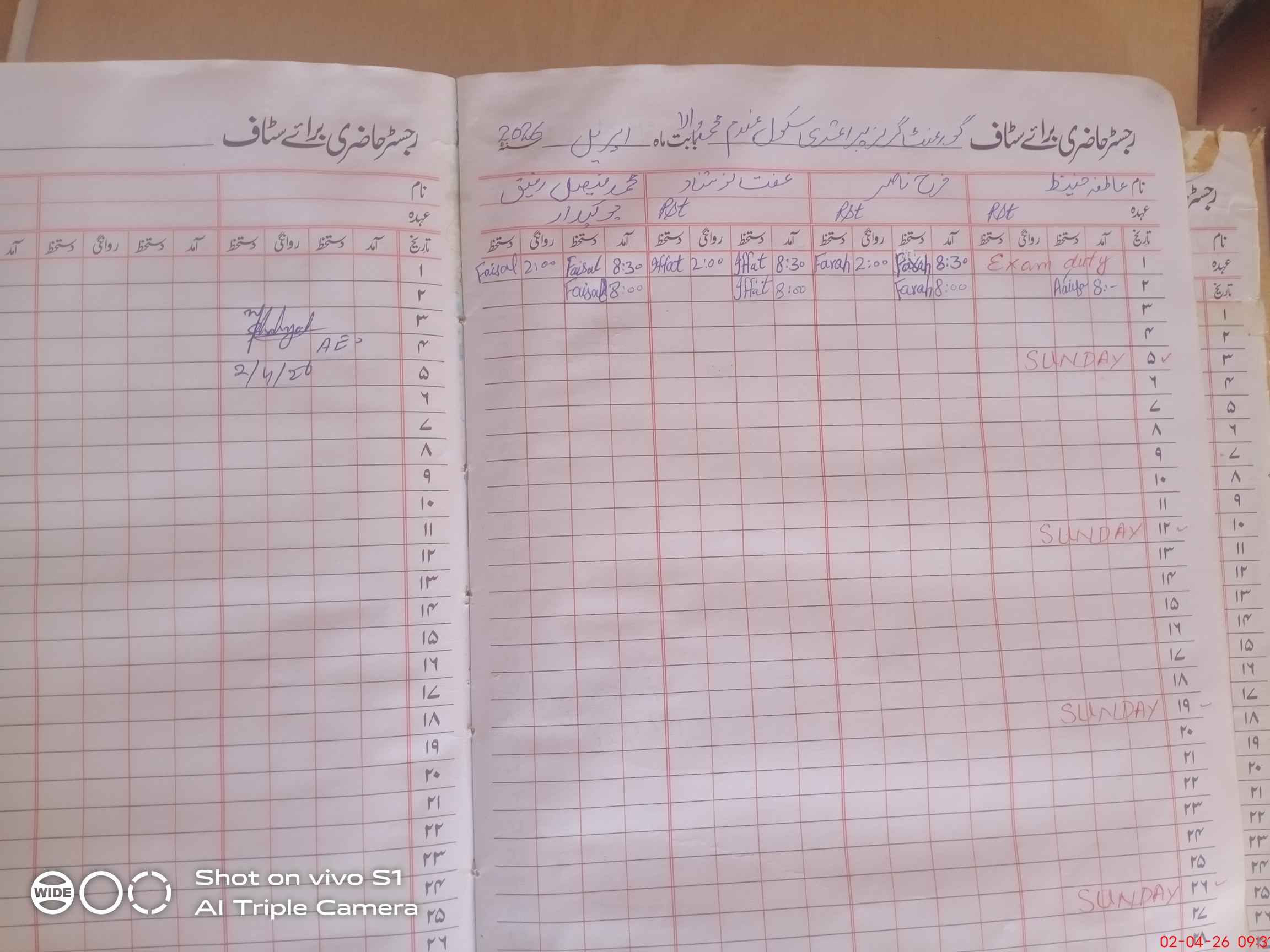 | Attendance Register | Head Teacher | MEA with School | Visit Proof |