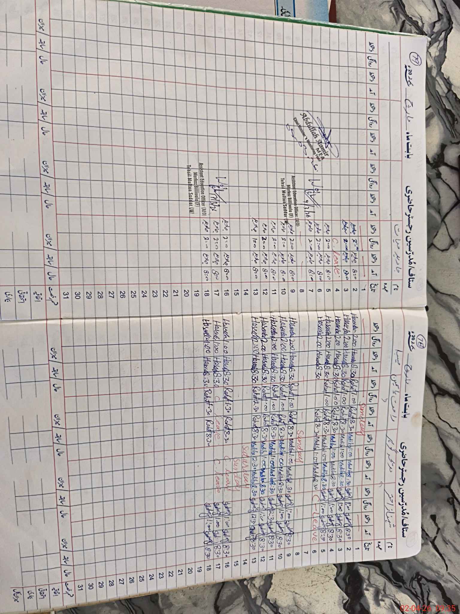 | CNIC | Full Name | Designation | R/C | Absence During Last Calender Month |