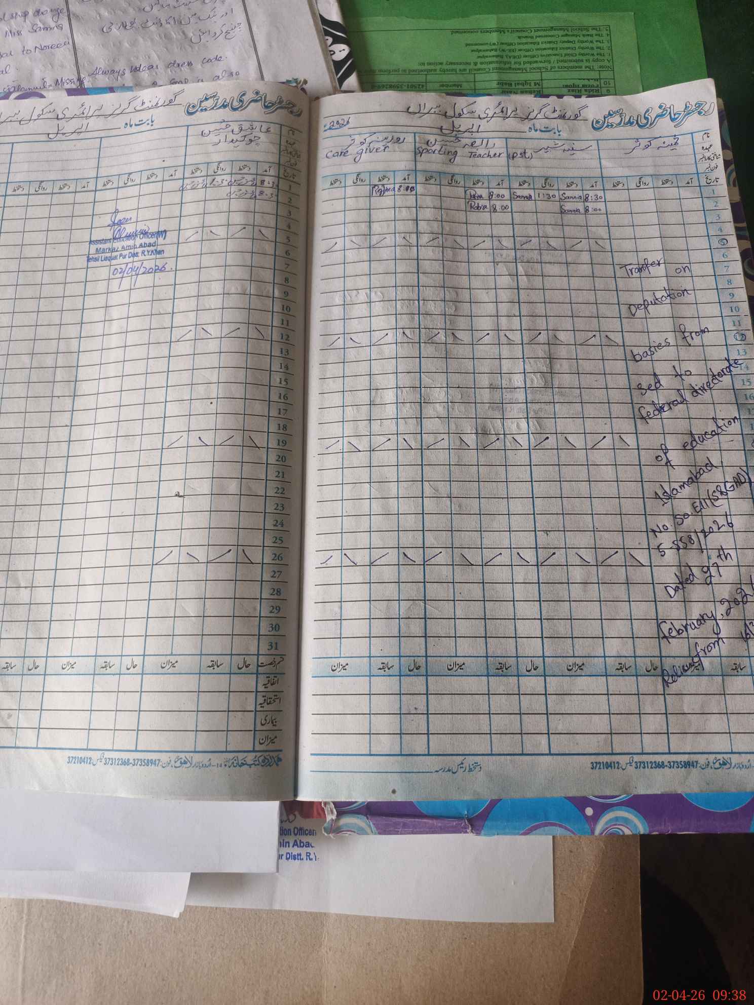 | Attendance Register | Head Teacher | MEA with School | Visit Proof |