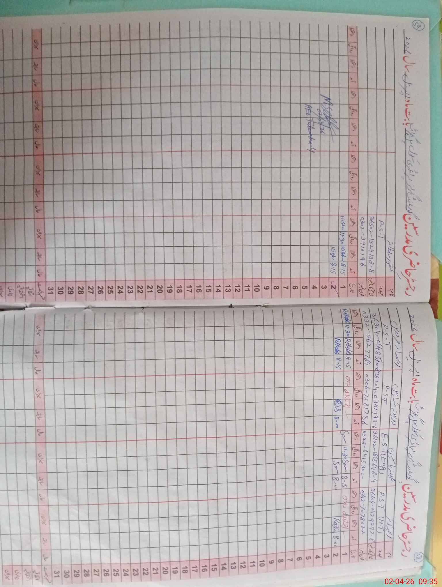 | CNIC | Full Name | Designation | R/C | Absence During Last Calender Month |