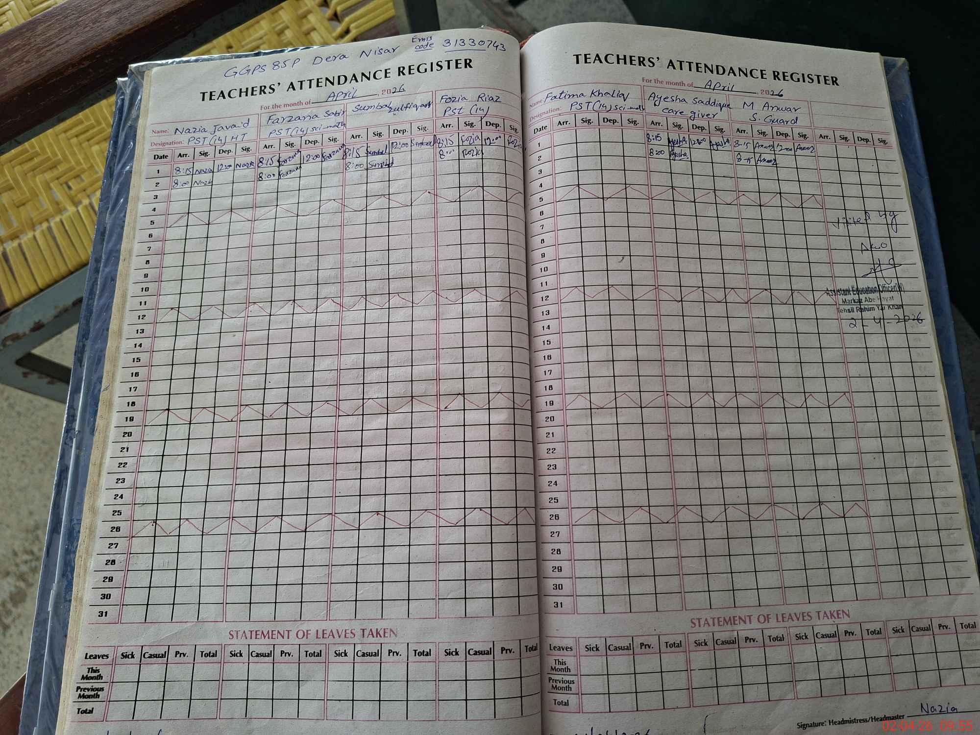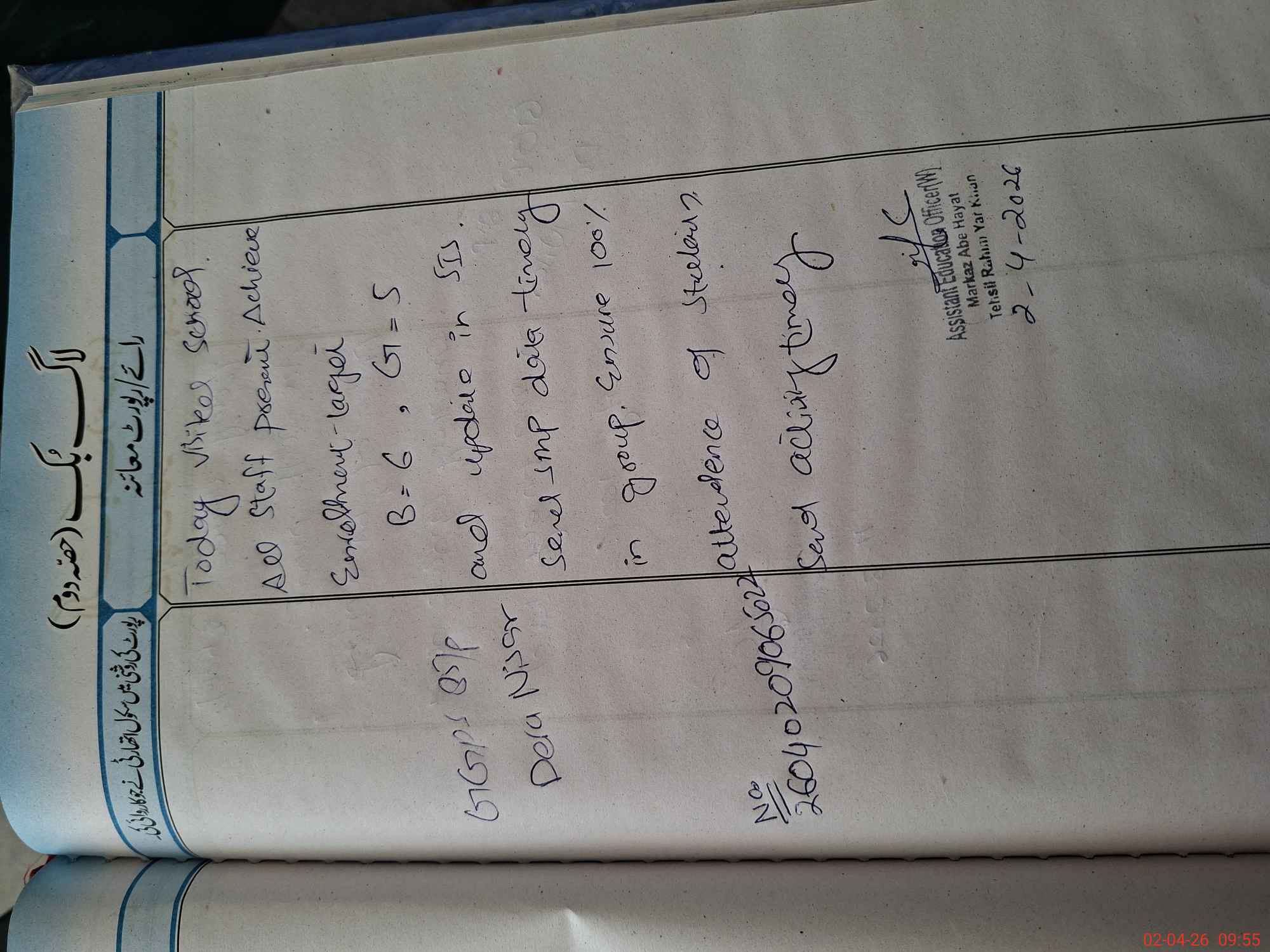 | Attendance Register | Head Teacher | MEA with School | Visit Proof |