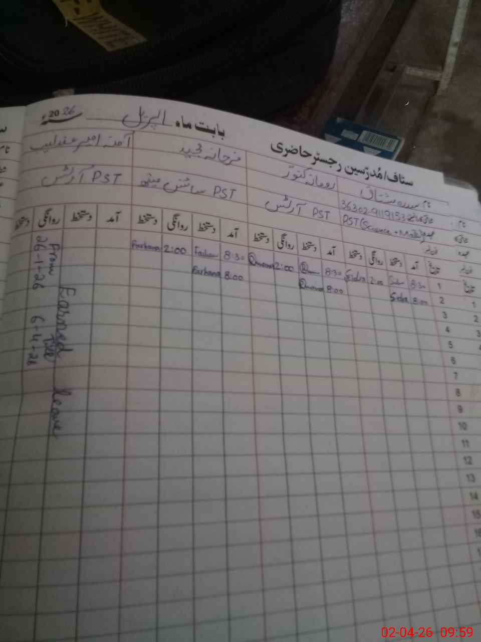 | CNIC | Full Name | Designation | R/C | Absence During Last Calender Month |