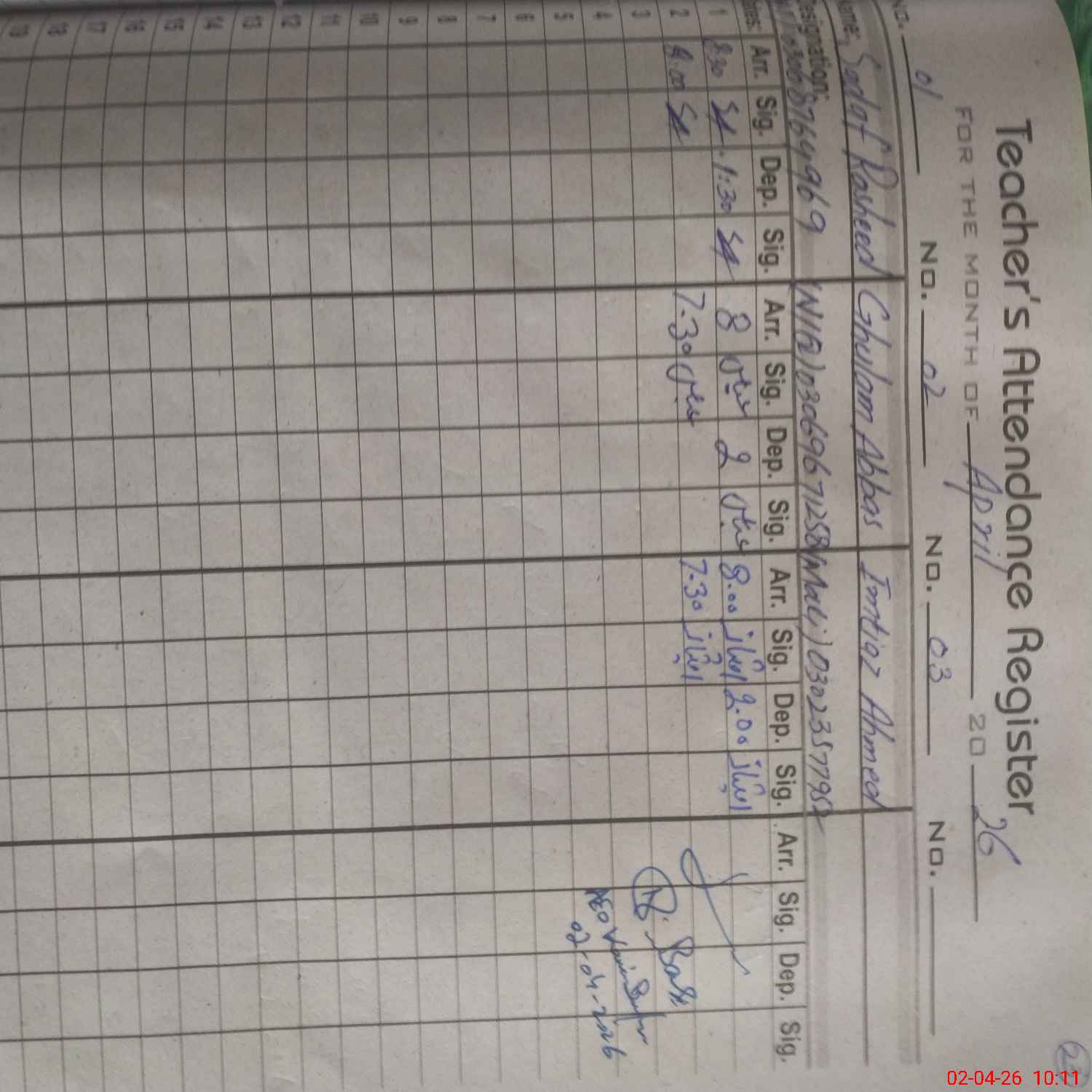 | Name: SA**** RA**** Designation: (School Headmaster's/Headmistress's) PST Phone/Cell Number: 03**** |