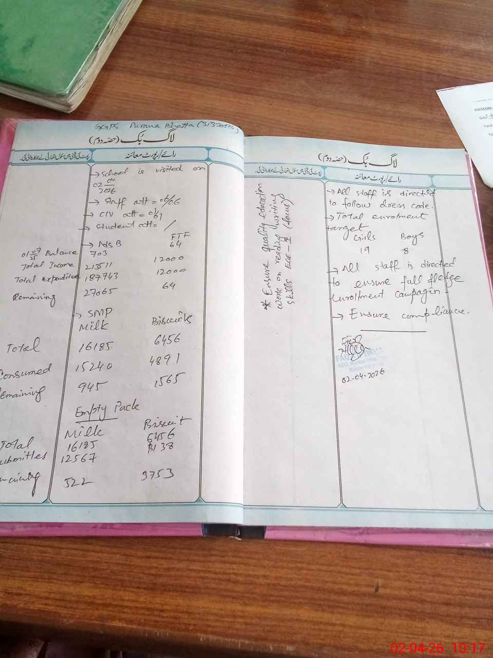 | Attendance Register | Head Teacher | MEA with School | Visit Proof |