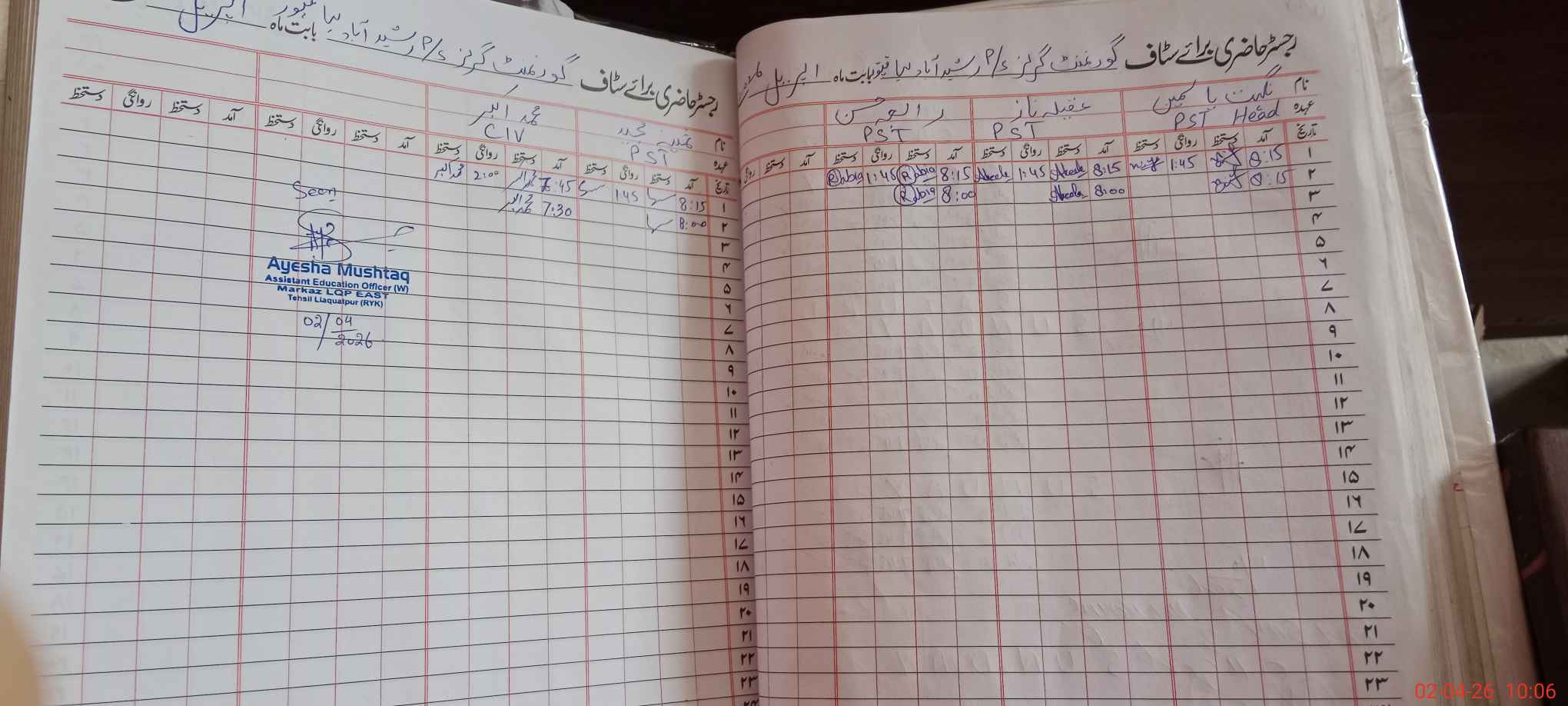 | District: RAHIMYAR KHAN | Tehsil: LIAQATPUR | Markaz: LQP EAST - FEMALE | Level: Primary | |