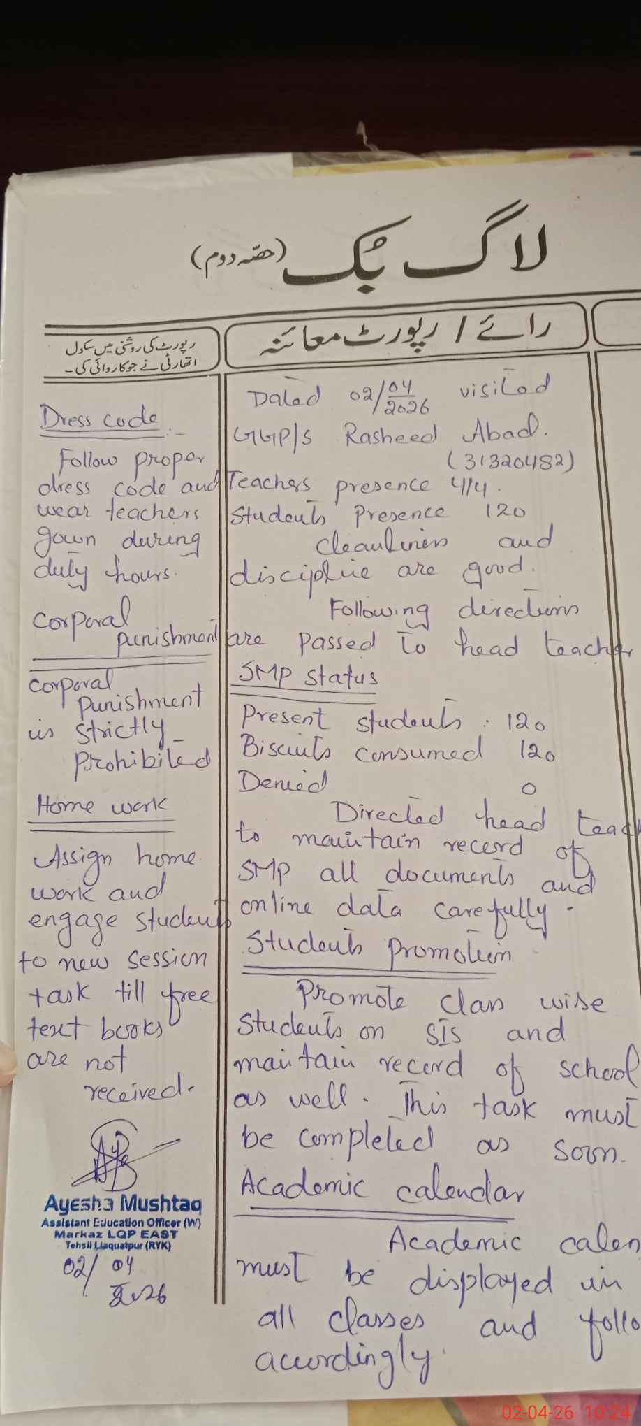 | EMIS Code: 31320482 | Name of School: GGPS RASHEED ABAD | |||
