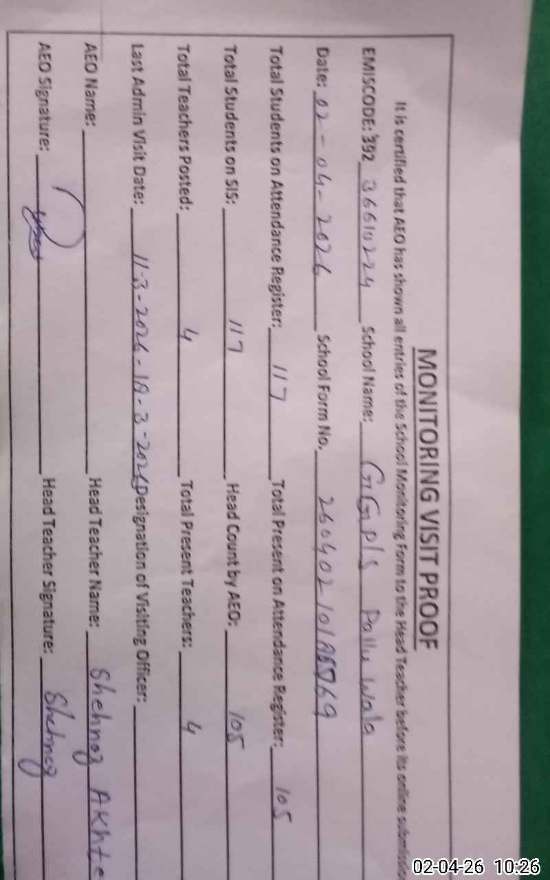 | EMIS Code: 36610224 | Name of School: GGPS PALLU WALA | |||