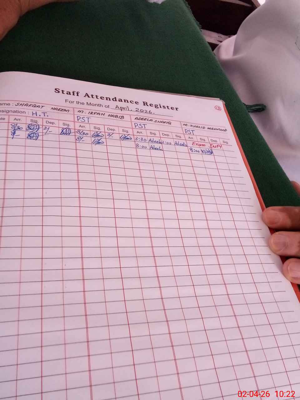 | Name: SH**** NA**** Designation: (School Headmaster's/Headmistress's) PST Phone/Cell Number: 03**** |