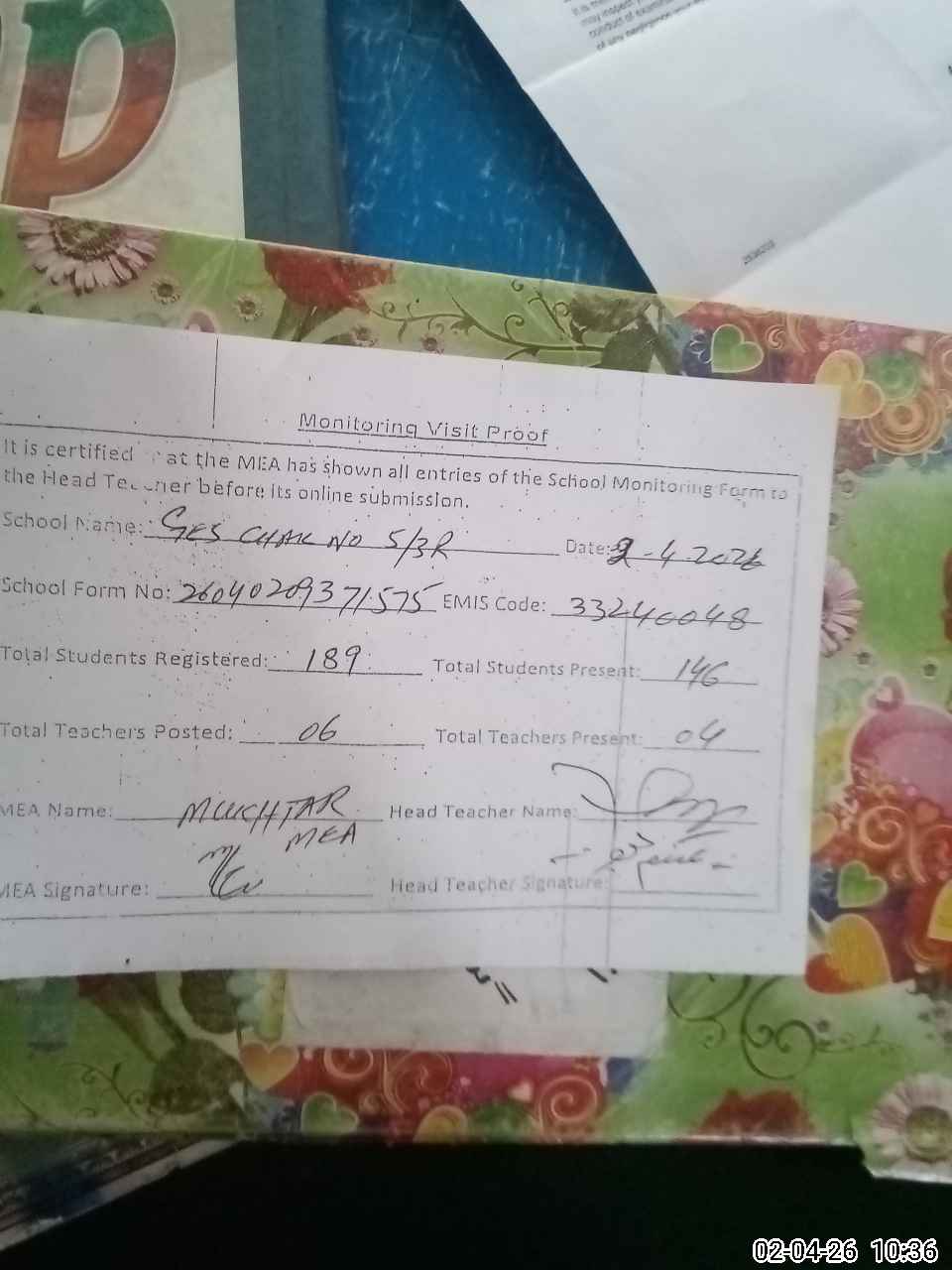 | EMIS Code: 33240048 | Name of School: GES CHAK NO. 5/3-R | |||