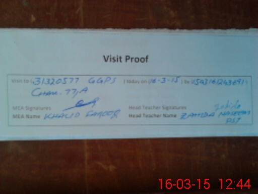 | Attendance Register | Head Teacher | MEA with School | Visit Proof |
