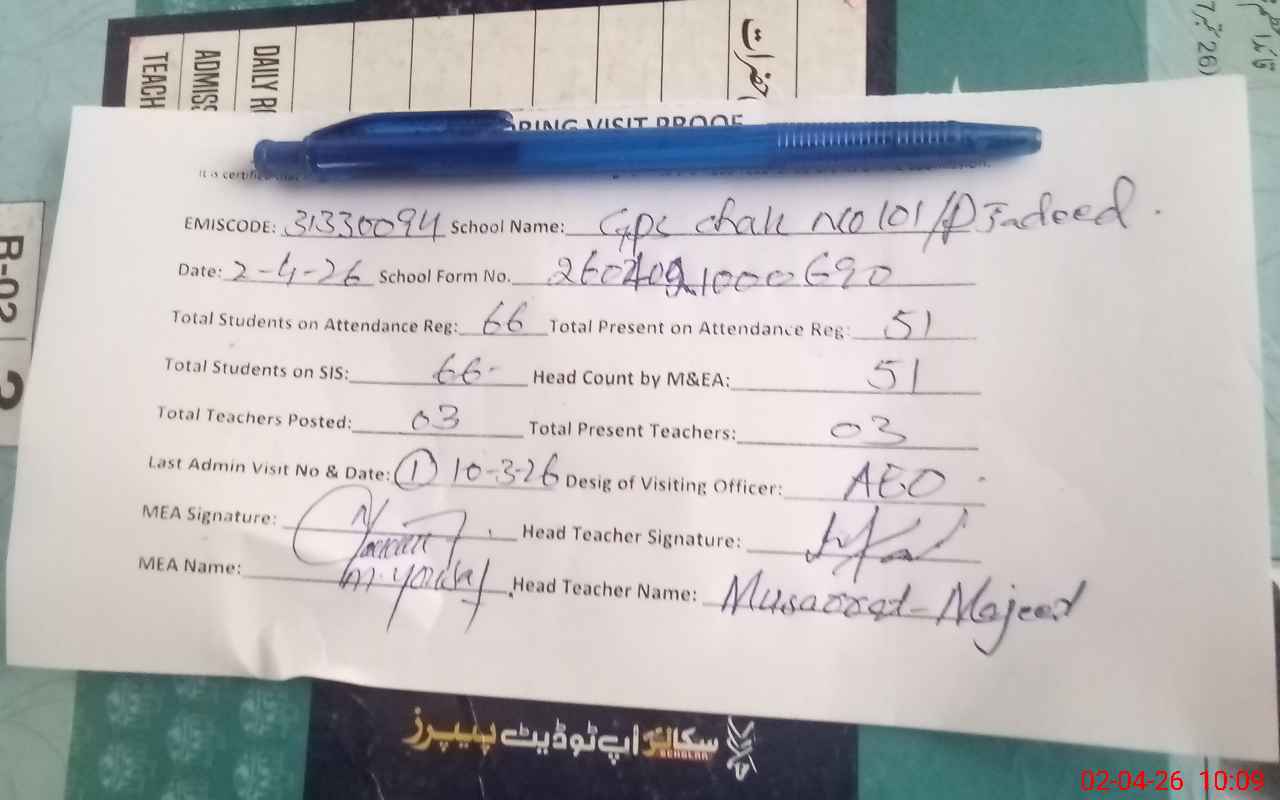| EMIS Code: 31330094 | Name of School: GPS CHAK 101/P JADEED | |||