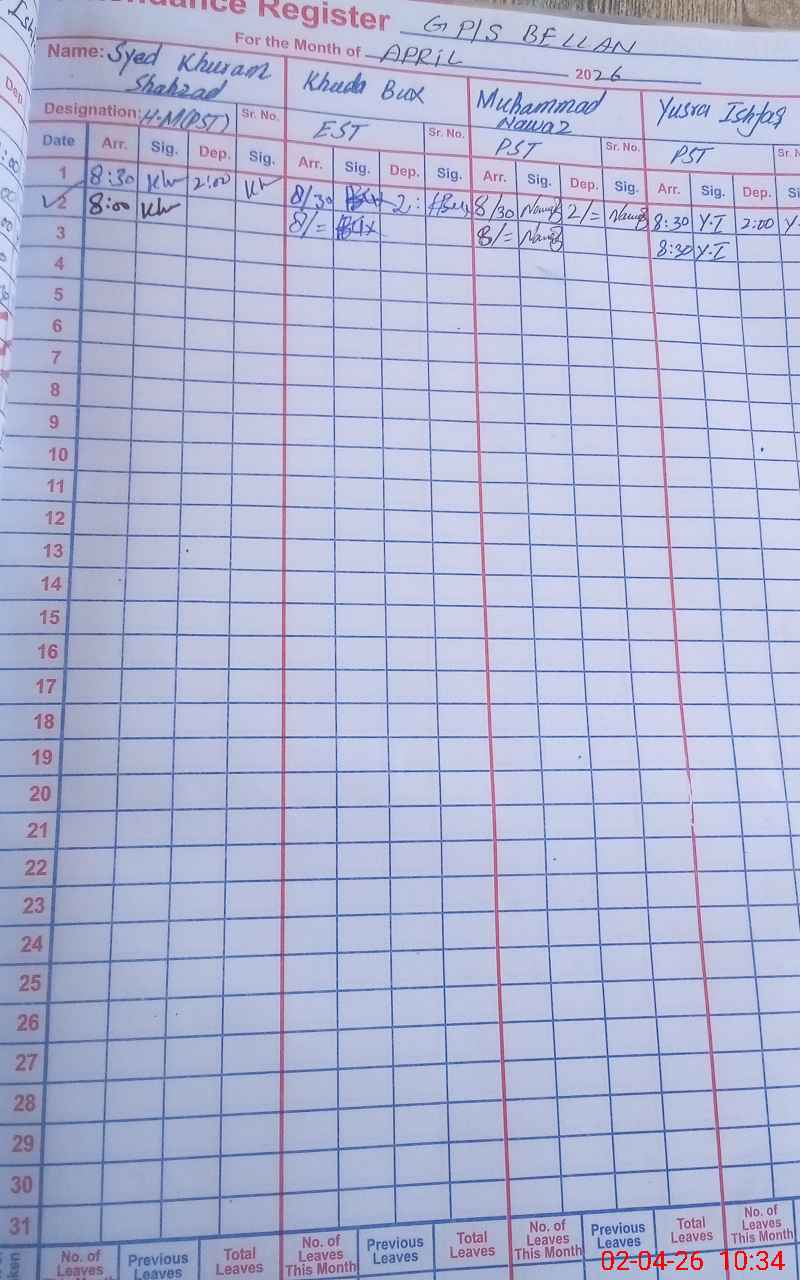| Name: Sy**** Kh**** Sh**** Designation: (School Headmaster's/Headmistress's) PST/PTC/JV Phone/Cell Number: 03**** |
