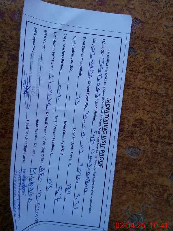 | EMIS Code: 36110403 | Name of School: GPS CHOKIDARAN MOUZA KOTLA MULTAN | |||