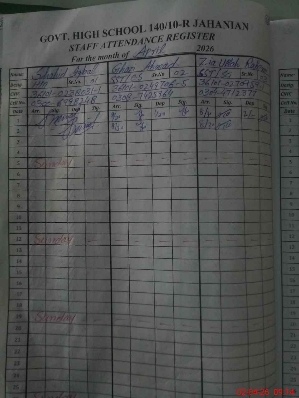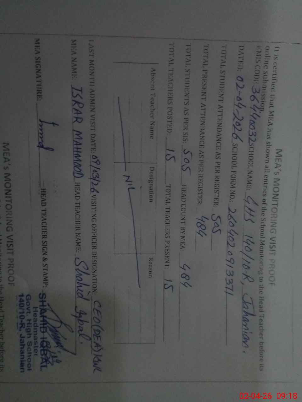 | EMIS Code: 36440032 | Name of School: GHS 140/10-R, JAHANIAN | |||
