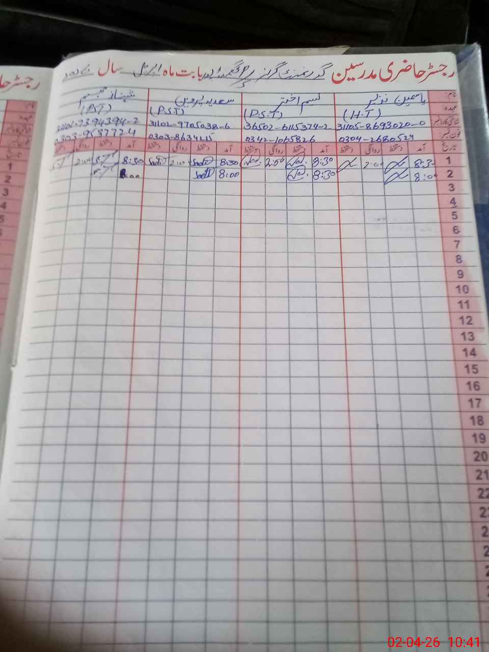 | Name: Ya**** Na**** Designation: (School Headmaster's/Headmistress's) PST Phone/Cell Number: 03**** |