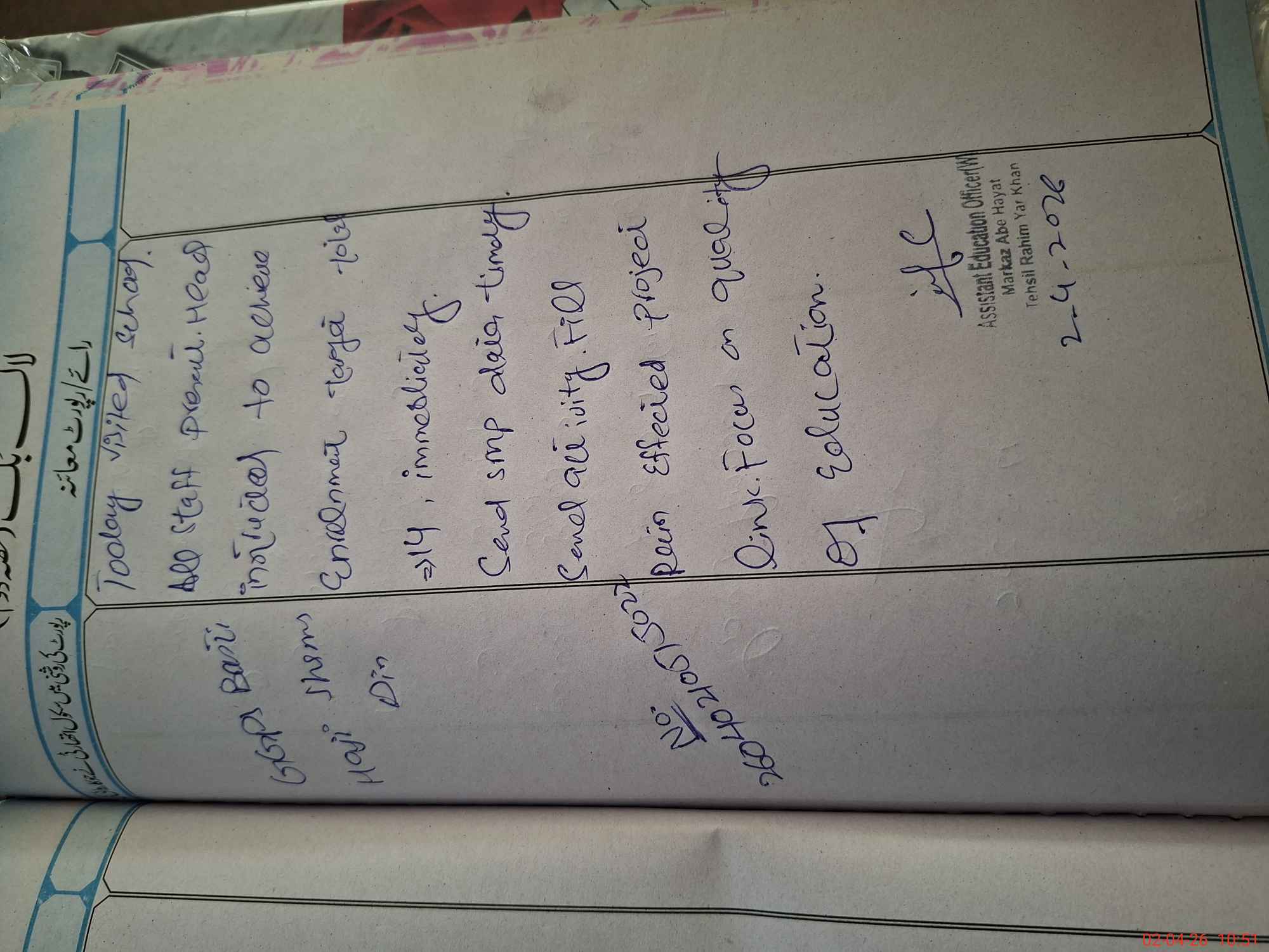 | Certified that this School was Inspected by the Undersigned MEA/DMO Today and the Information Stated Above is as Per Record. | |||||