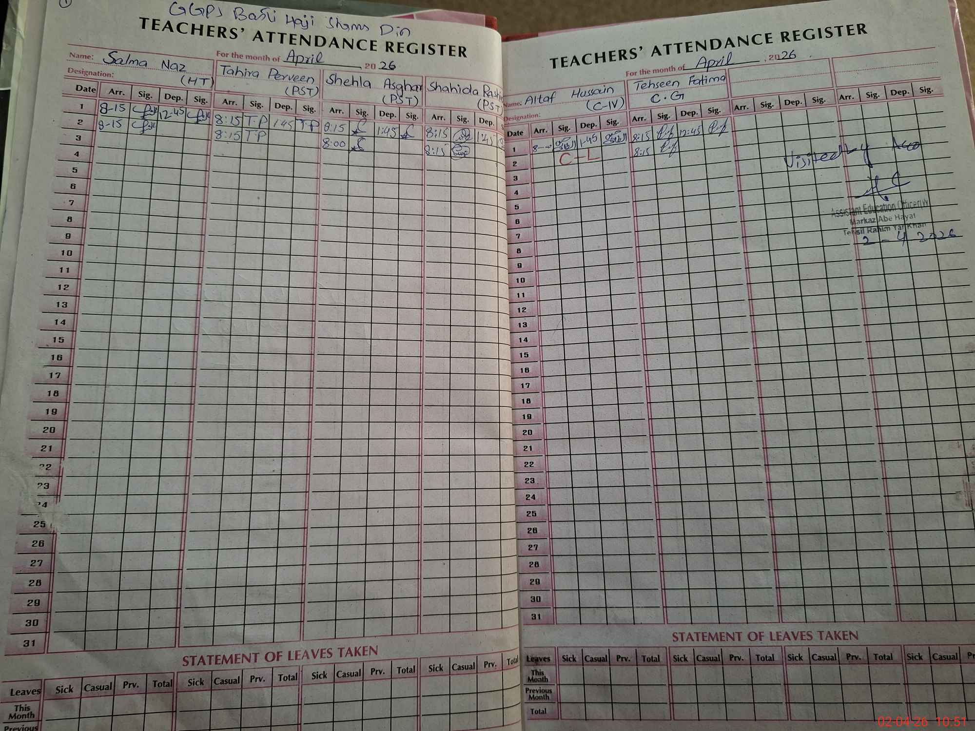 | Attendance Register | Head Teacher | MEA with School | Visit Proof |